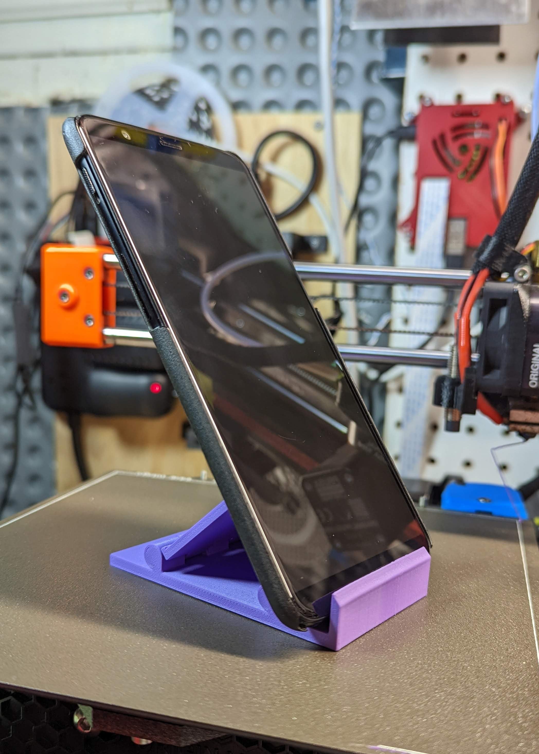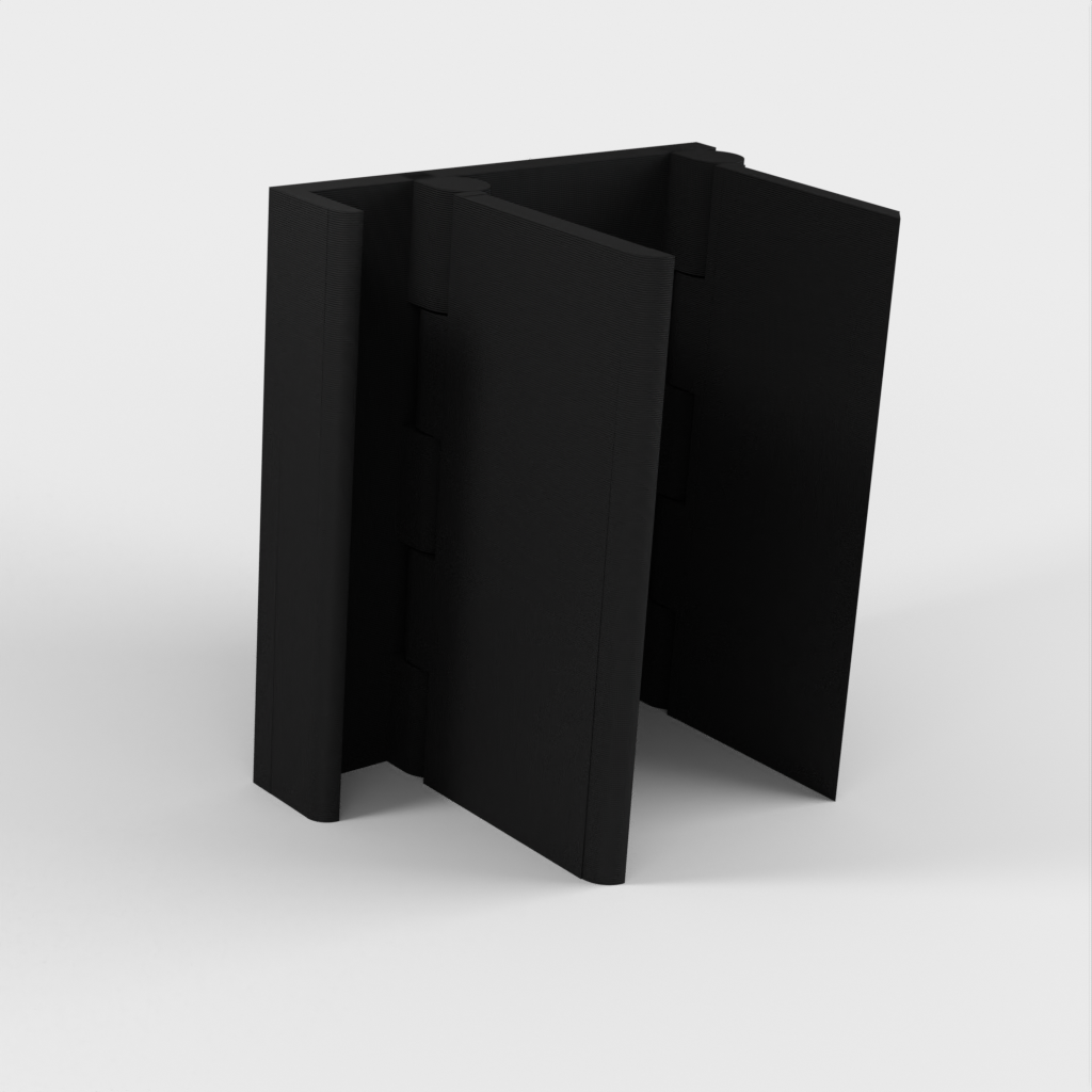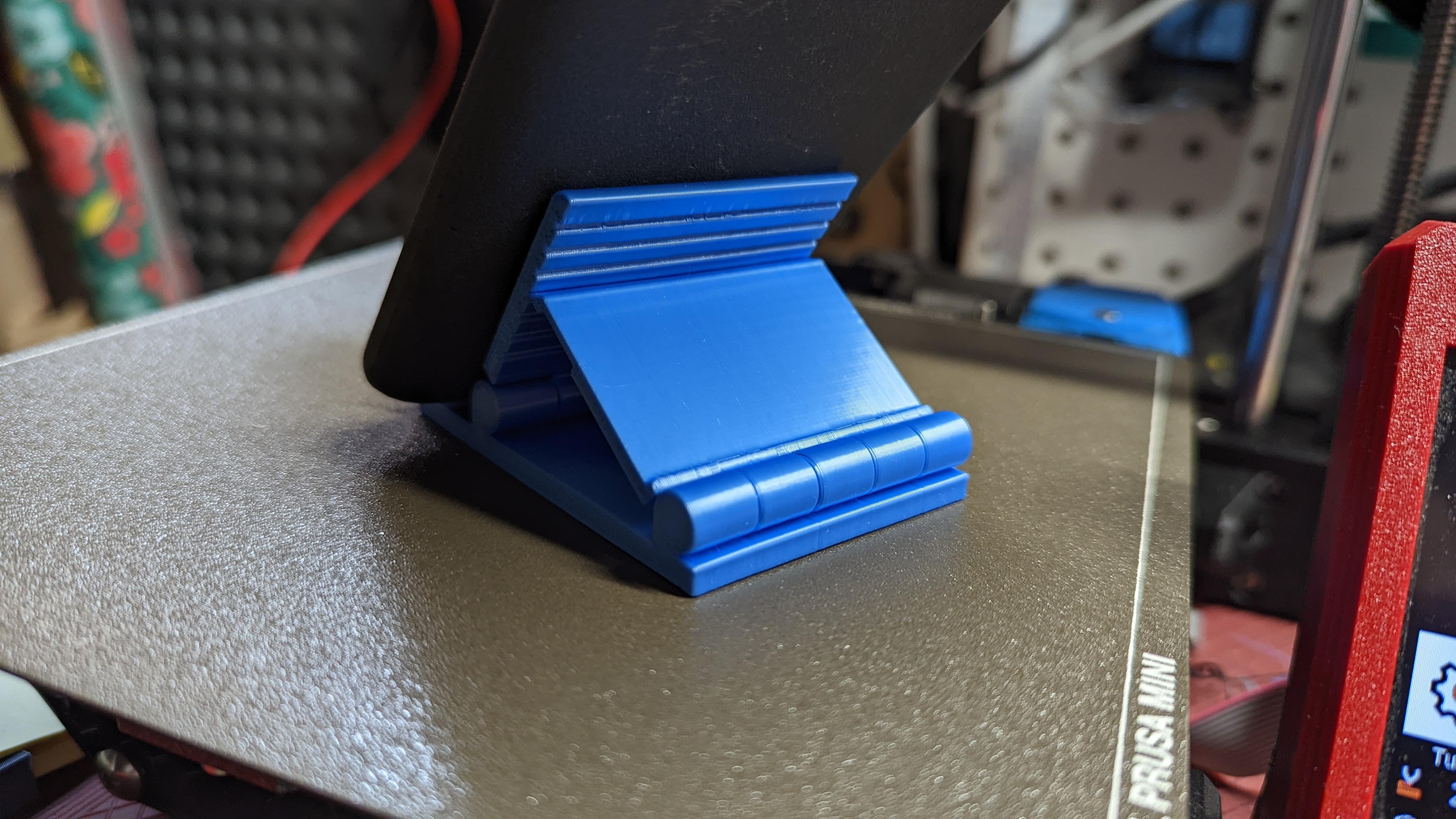 Minimalistyczny, ultraprzenośny, składany uchwyt na telefon to mały, składany uchwyt na telefon, który z łatwością mieści się w torbie na laptopa lub dowolnej kieszeni. Składa się na płasko i utrzymuje większość telefonów komórkowych pod odpowiednim kątem. Dostępne są rozmiary 50 mm i 80 mm. Rozmiar 50 mm jest ultraprzenośny i utrzymuje każdy telefon w pozycji pionowej, podczas gdy 80 mm pasuje do szerokości większości telefonów komórkowych, jeśli jest to preferowane. Może trzymać telefon pionowo i nie przewróci się przy dotknięciu ekranu, chociaż najlepiej umieścić go poziomo, aby uzyskać dostęp do portu USB.
