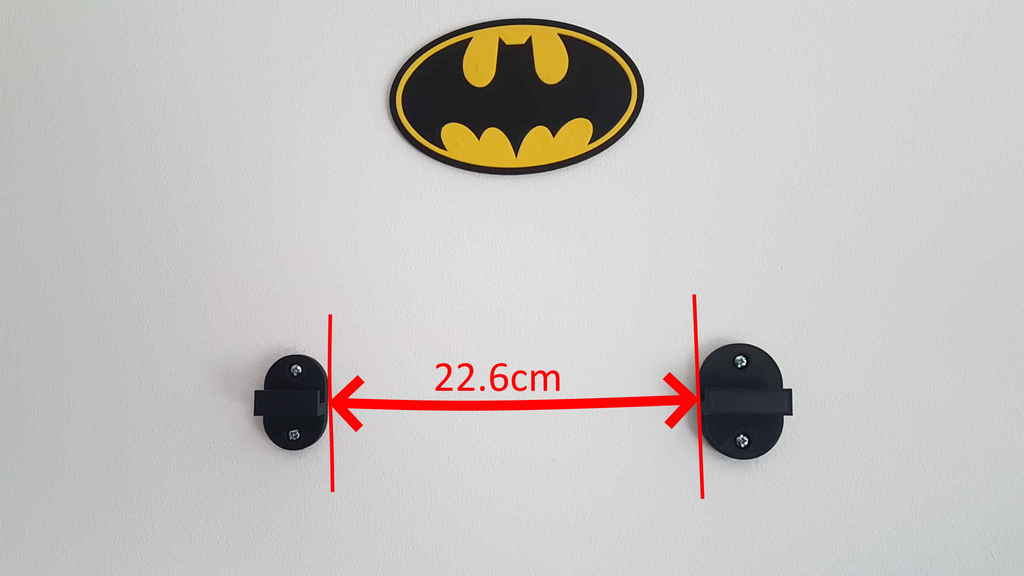 Mocowanie ścienne przeznaczone do Lego Batmobilu z 1989 roku. Ten uchwyt ścienny umożliwia bezpieczne i widoczne wyeksponowanie Lego Batmobilu na ścianie. Upewnij się, że zachowasz odległość 22,6 cm między dwoma haczykami (możesz to zmierzyć, umieszczając je na samochodzie).