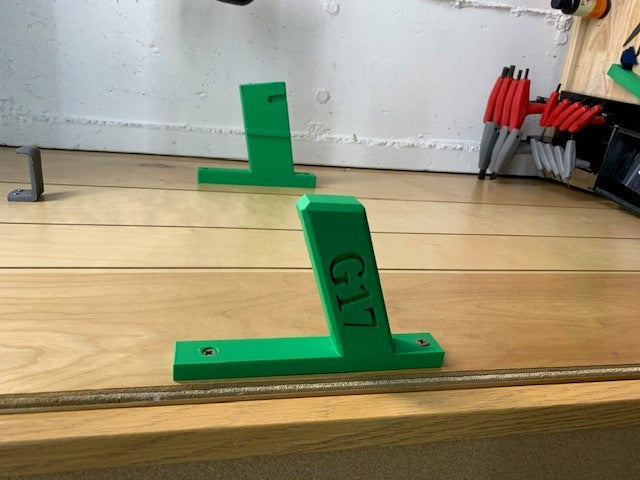 Dzięki temu uchwytowi ściennemu Twój Glock 17 może być prezentowany w zorganizowany sposób, a jednocześnie znajdować się w zasięgu ręki.