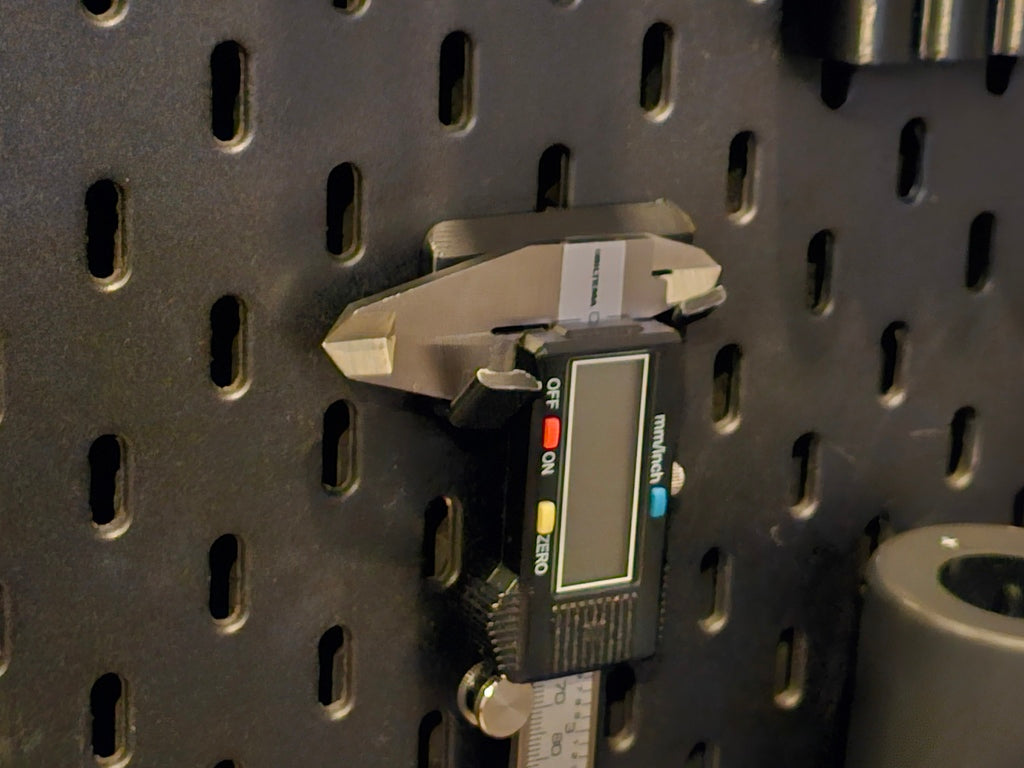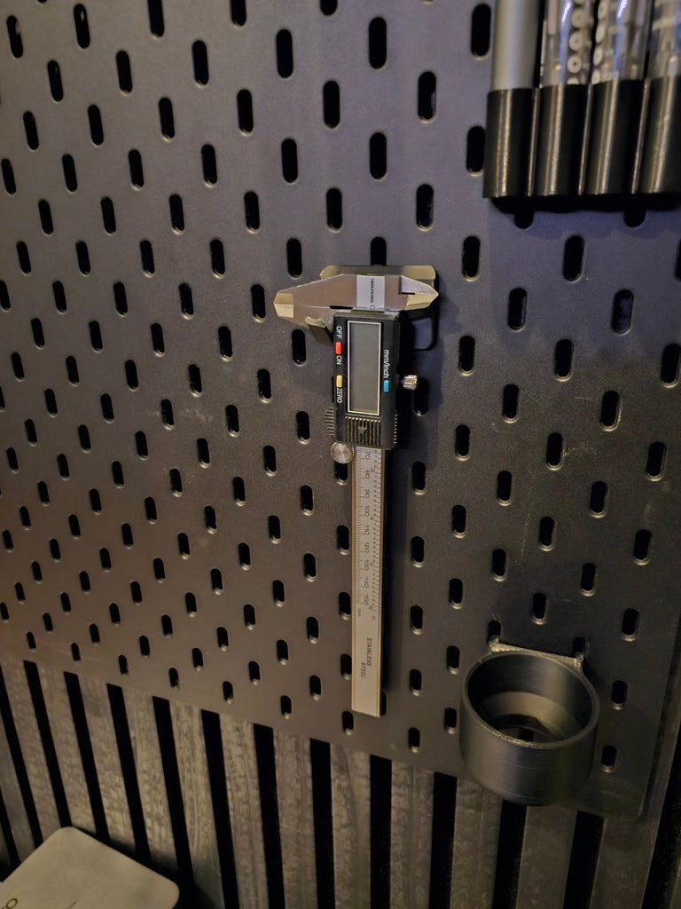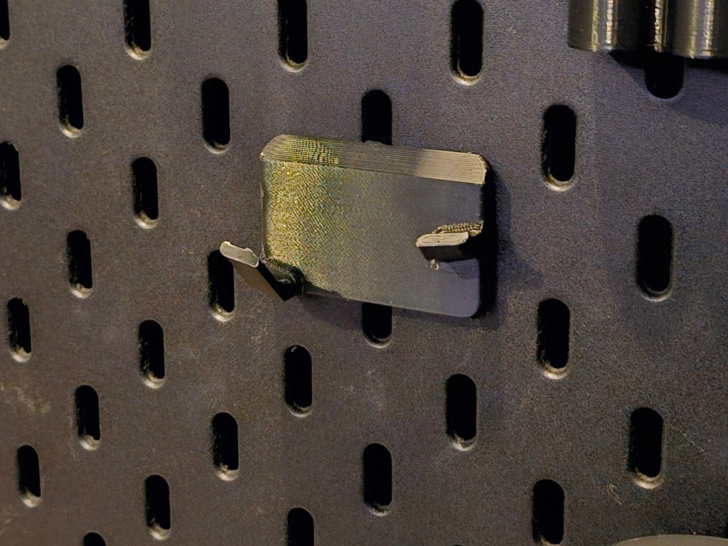 Jest to uchwyt kalibrowy do płyty montażowej IKEA SKÅDIS. Jego górna część jest nieco mniejsza i ma ładniej zaokrąglone krawędzie w porównaniu do oryginalnego modelu. Konstrukcja haka została również nieznacznie zmodyfikowana dla lepszej użyteczności.