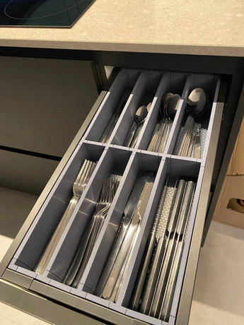 Ten modułowy organizer do szuflad umożliwia przekształcenie zagraconych szuflad w uporządkowane przestrzenie w Twoim domu. Niezależnie od tego, czy jest to w kuchni, biurze, warsztacie, czy w zupełnie innym miejscu, to elastyczne rozwiązanie do przechowywania oferuje indywidualne podejście do utrzymywania porządku w Twoich rzeczach.