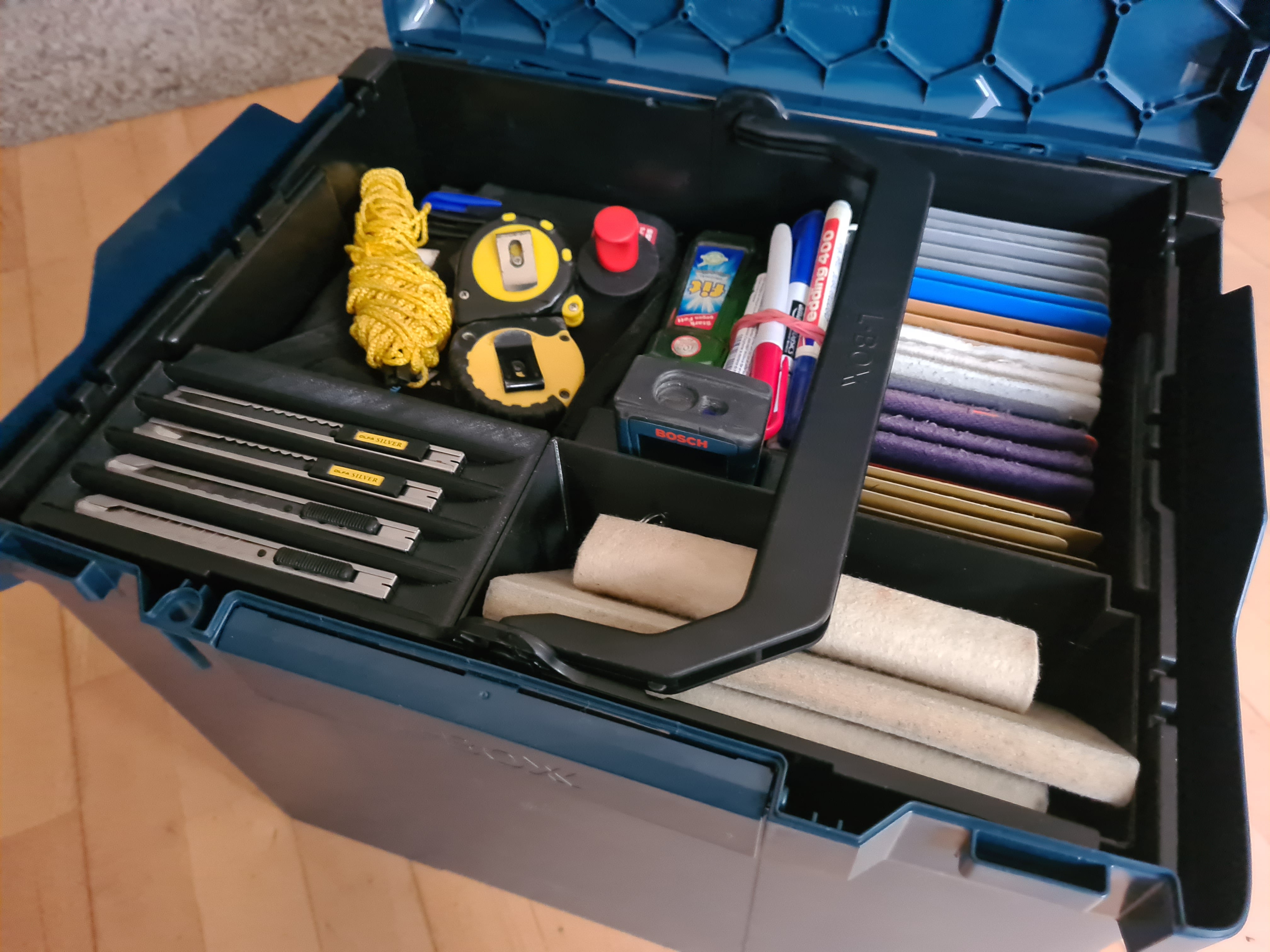 Ten modułowy pojemnik na noże został zaprojektowany z myślą o bezproblemowej integracji z systemem BOSCH L-Boxx lub Sortimo, w szczególności z wkładkami wiszącymi LB 238/374. Oferuje zorganizowane rozwiązanie do przechowywania narzędzi tnących, dzięki czemu zawsze masz je pod ręką, niezależnie od tego, czy pracujesz z foliami, opakowaniami, czy innymi materiałami wymagającymi precyzyjnych cięć.