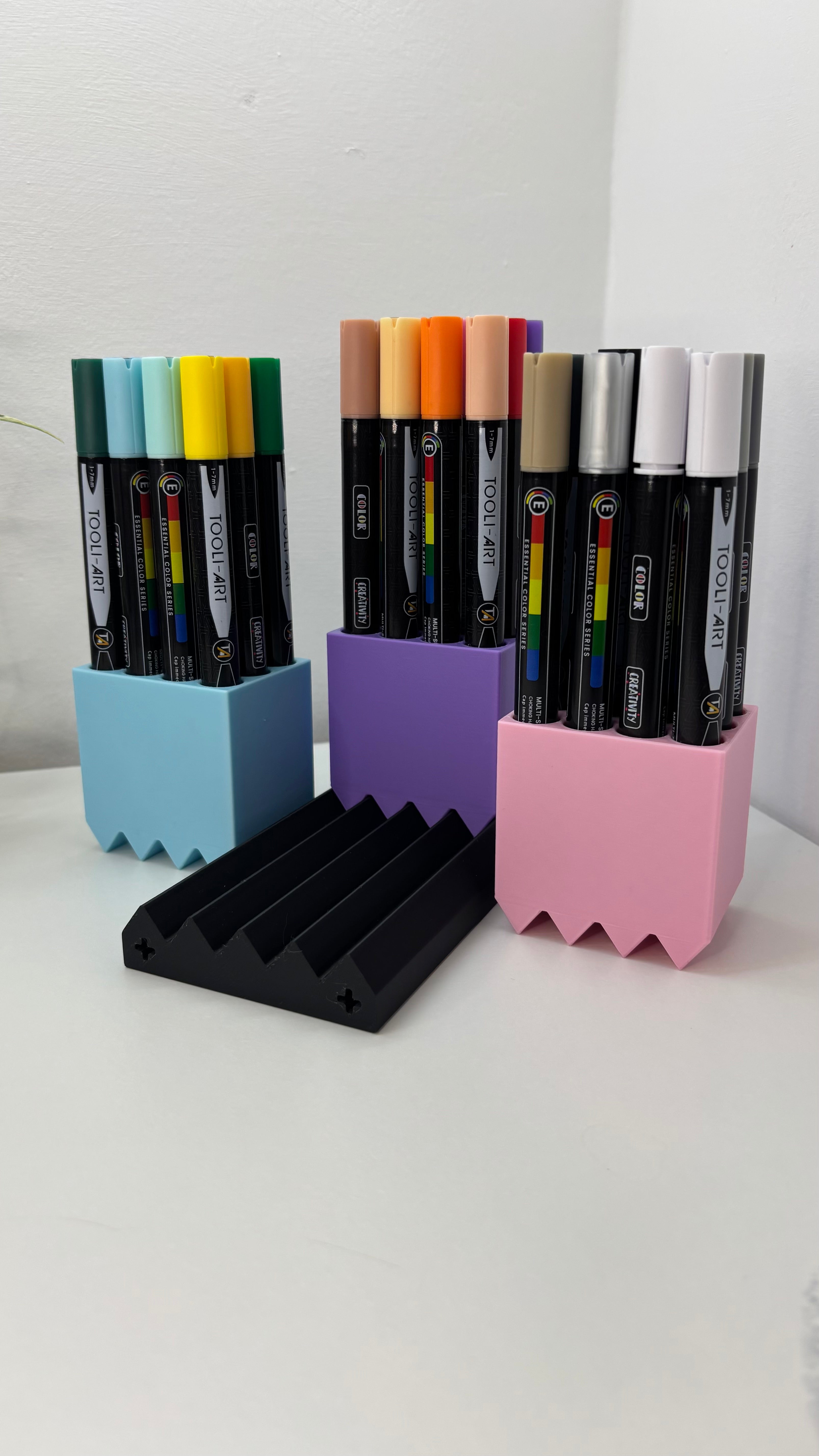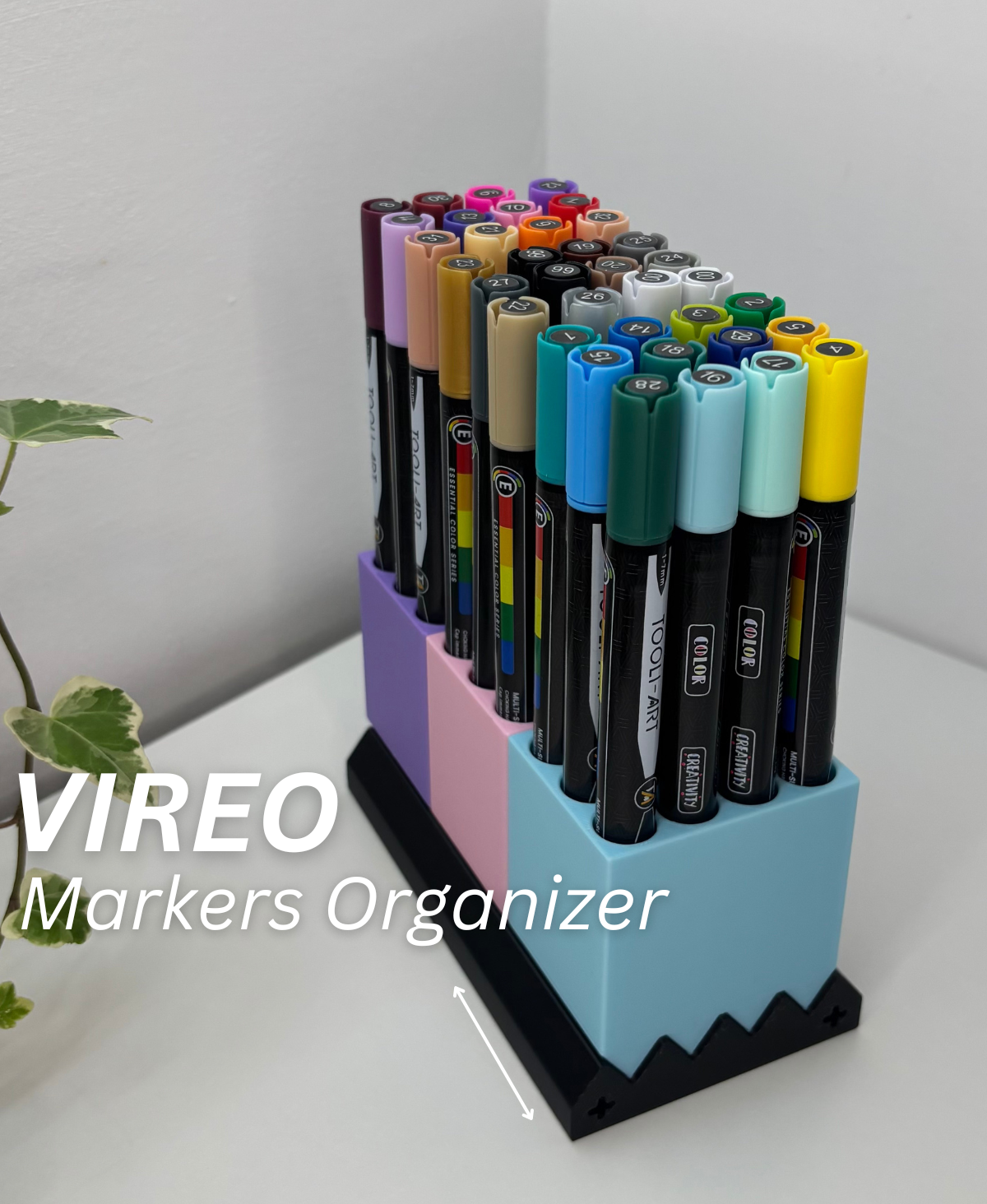 Odkryj skuteczny sposób na uporządkowanie przestrzeni roboczej dzięki temu modułowemu organizerowi do markerów. Zaprojektowany, aby stworzyć porządek i zoptymalizować przestrzeń na biurku, ten drukowany w 3D uchwyt na długopisy to praktyczny organizer na biurko, który pomoże Ci uporządkować artykuły piśmiennicze. Składa się z podstawy i oddzielnych części uchwytu na długopisy, które precyzyjnie wsuwają się w siebie za pomocą rowków w kształcie VVVV, co zapewnia stabilny i bezproblemowy montaż.