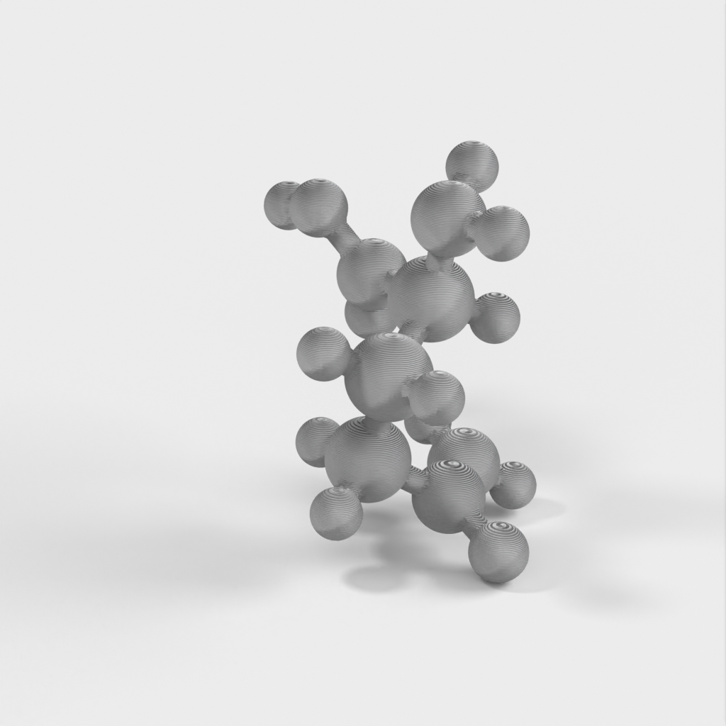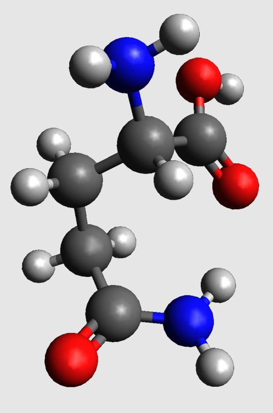 Molekularny model Glutaminy w skali atomowej. Model jest wodoodporny, różnorodny i przyjazny dla 3D STL. Glutamina jest częścią wielu białek i można ją porównać do glukozy i węglowodanów, aby zilustrować, dlaczego potrzebne są różne rodzaje żywności, aby uzyskać wszystkie elementy potrzebne organizmowi. Model ten jest szczególnie przydatny w nauczaniu chemii.
