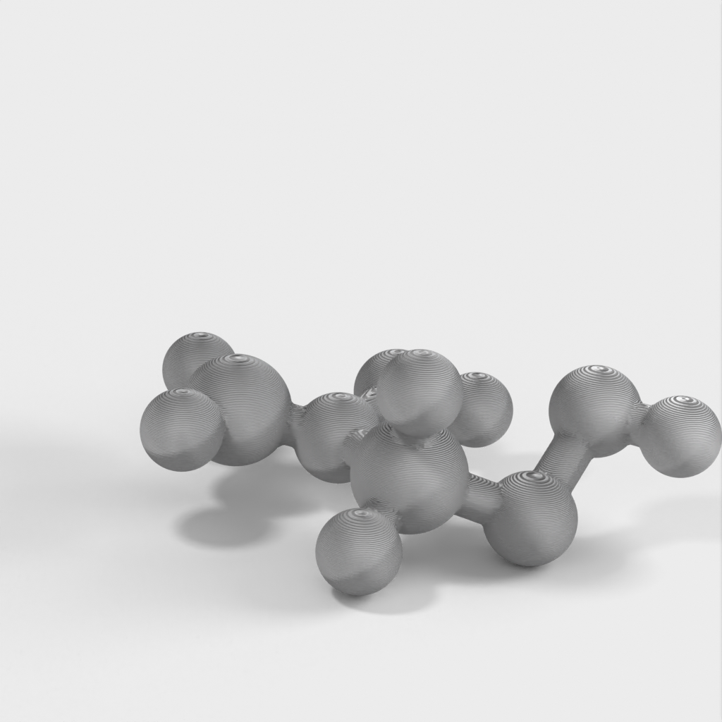 To jest model molekularny octanu winylu. Model jest wykorzystywany do nauczania dzieci chemii, w szczególności polioctanu winylu (PVA), który jest białym klejem używanym do produkcji szlamu w szkole podstawowej. Model ten zapewnia wizualną reprezentację tego, co znajduje się w szlamie.