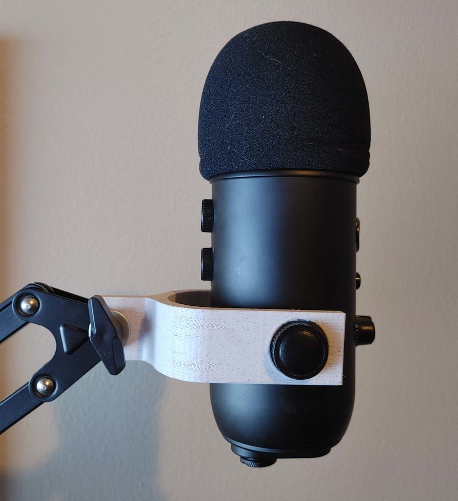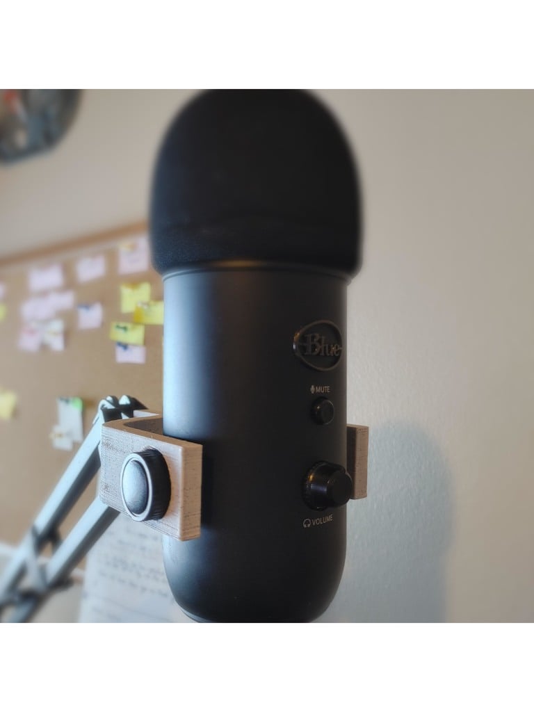 Uchwyt mikrofonu Blue Yeti został zaprojektowany specjalnie do użytku z mikrofonami Blue Yeti. Umożliwia umieszczenie mikrofonu w idealnej pozycji do nagrywania. Wraz z mikrofonem można użyć dołączonych podkładek i nakrętek motylkowych, które są dołączone do metalowej osłony dołączonej do Blue Yeti. Ten element mocujący można również dopasować do biurka, aby zapewnić łatwy dostęp i użytkowanie.