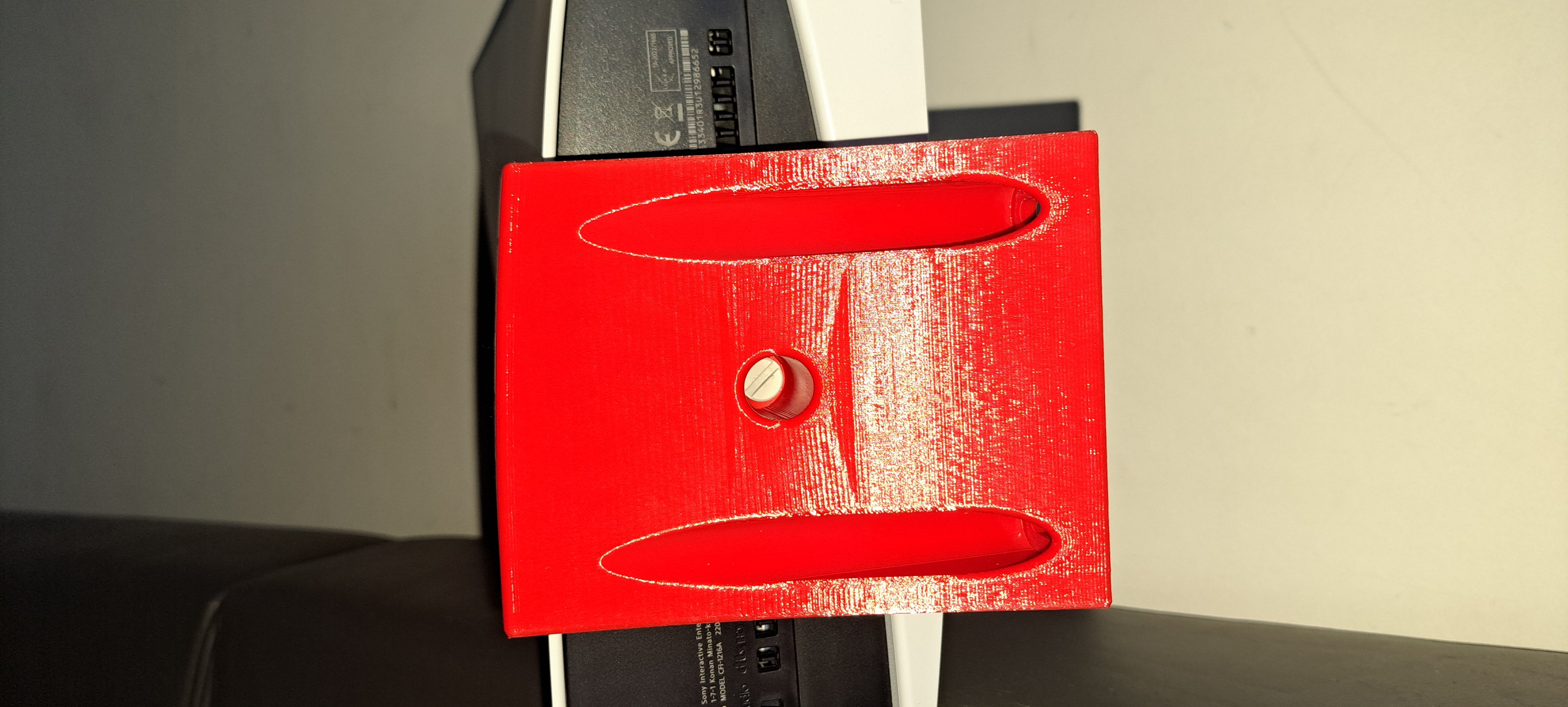 Konstrukcja uchwytu jest zoptymalizowana pod kątem bezpiecznego utrzymywania konsoli na miejscu i zapobiegania jej przewróceniu, szczególnie podczas dodawania akcesoriów, takich jak podstawka kontrolera do panelu przedniego. Standardowa orientacja umieszcza logo PS5 wyraźnie skierowane do przodu, z kablami skierowanymi w lewą stronę. Jeśli chcesz uzyskać alternatywną konfigurację, uchwyt można odwrócić, tak aby logo PS5 było skierowane do ściany, co zapewnia elastyczność w aranżacji wnętrza.