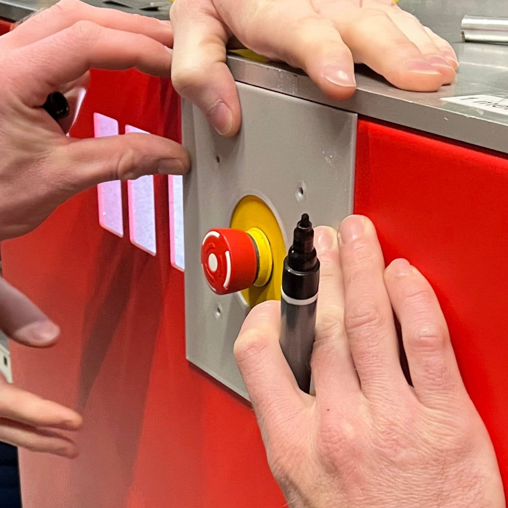 Osłona do ochrony przycisku zatrzymania awaryjnego Autostore.