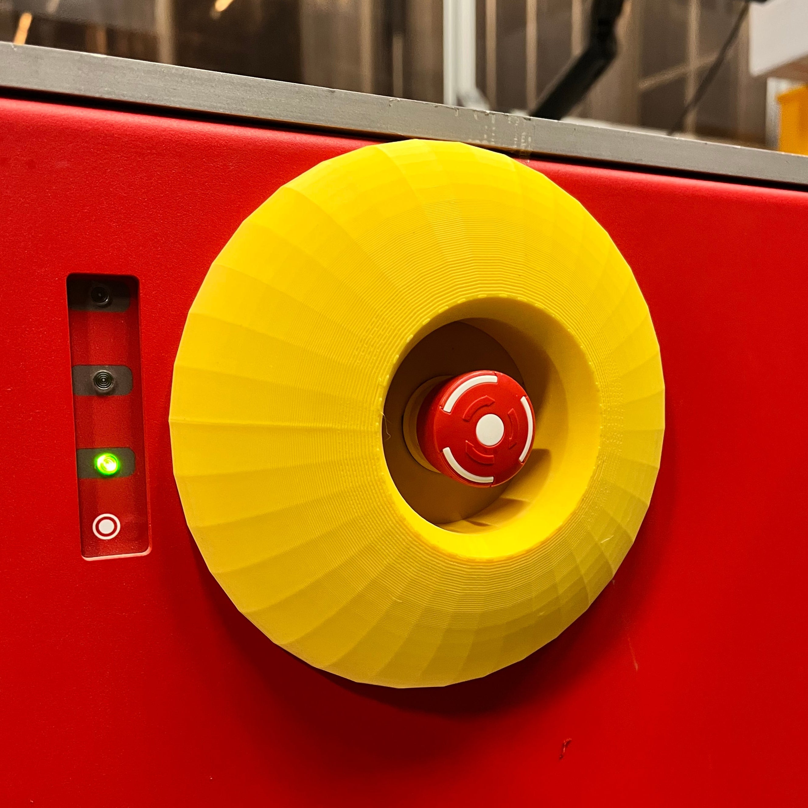 Zapobiegaj uszkodzeniu przycisku zatrzymania awaryjnego za pomocą tej osłony ochronnej