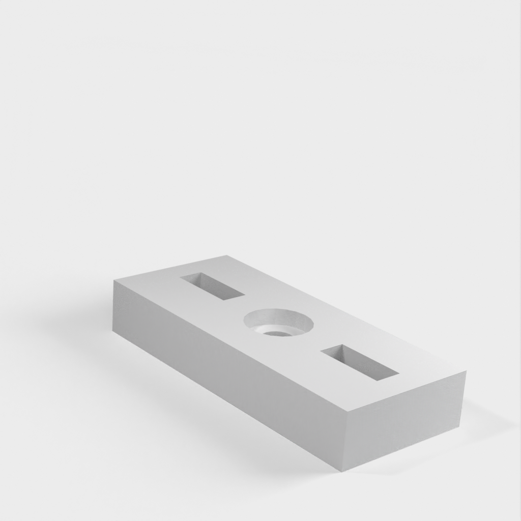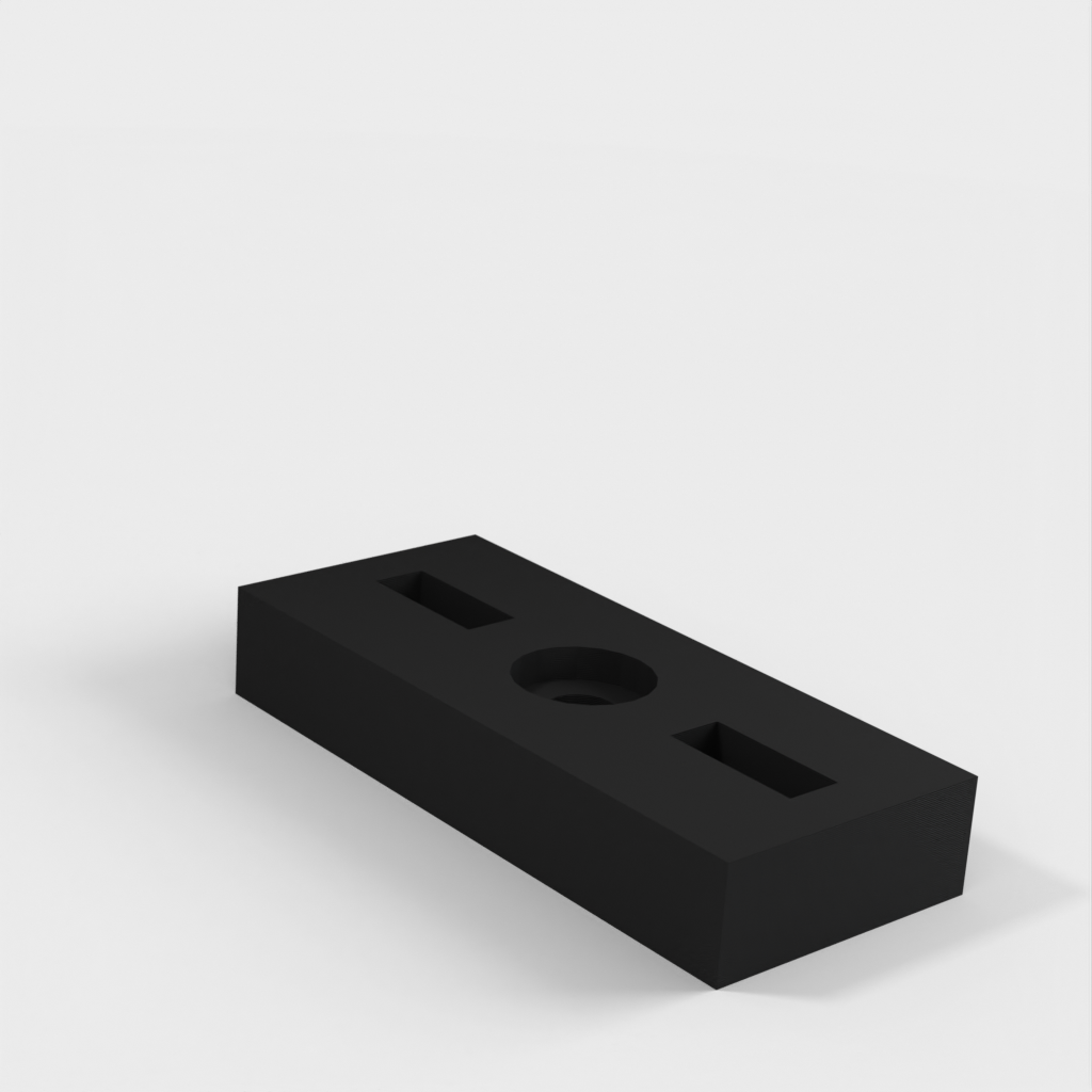 Wymaga 2 dodatkowych śrub, aby utrzymać deskorolkę. Zalecamy M4x65mm z nakrętkami M4 do mocowania deskorolki. Kwadratowe otwory mają szerokość 5 mm, więc śruba 3/16 cala (standardowy rozmiar otworu deskorolki) również powinna działać.