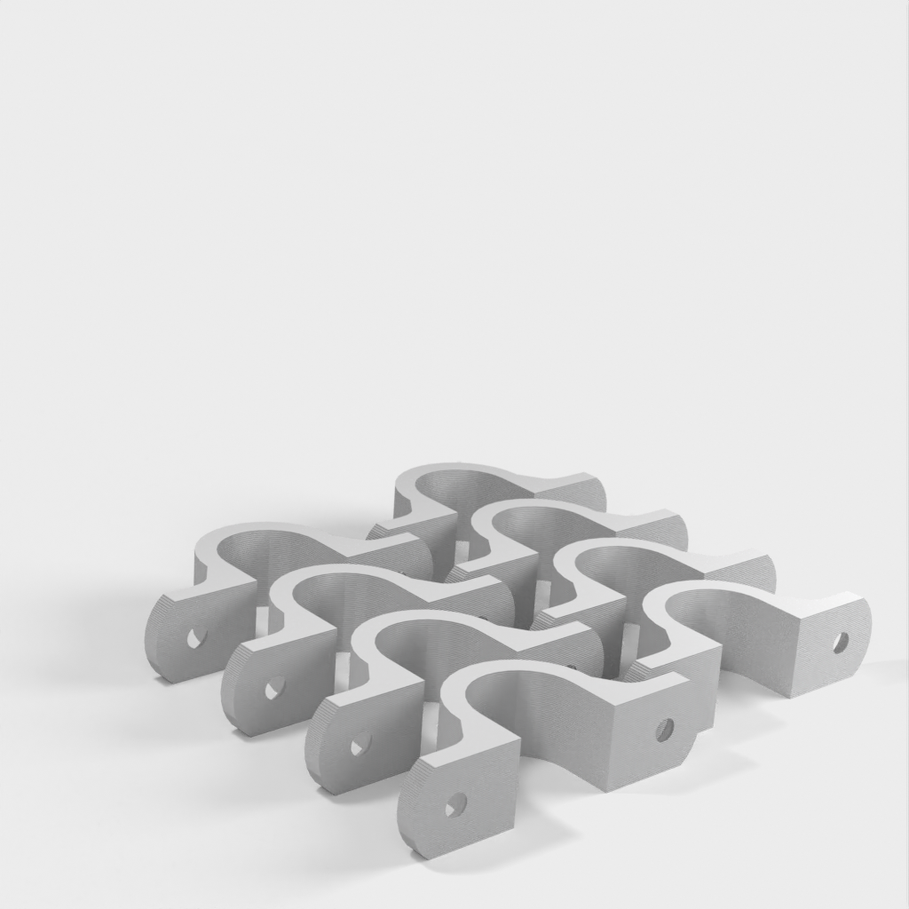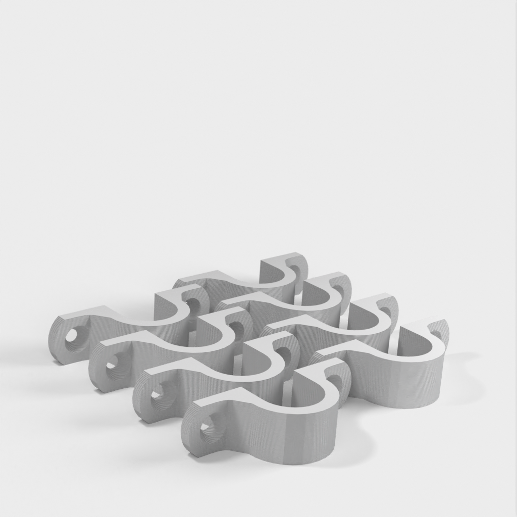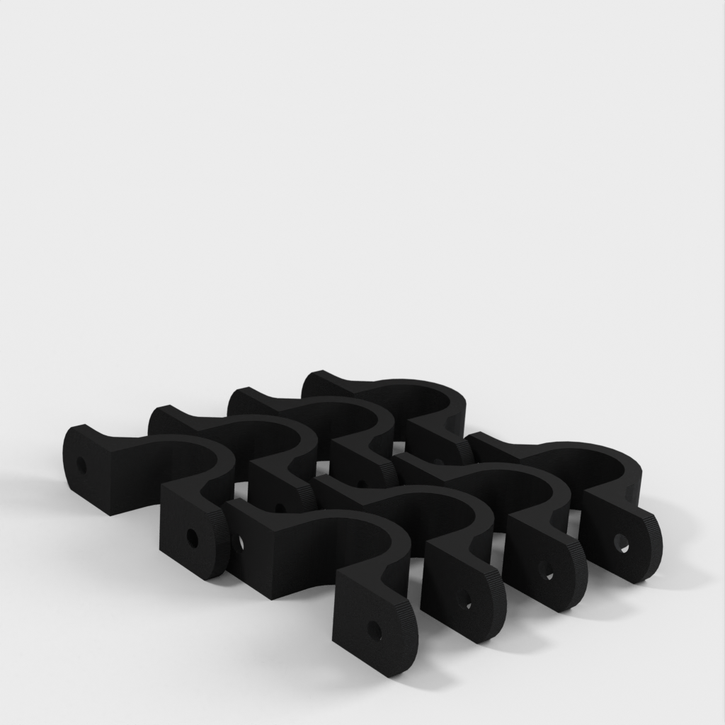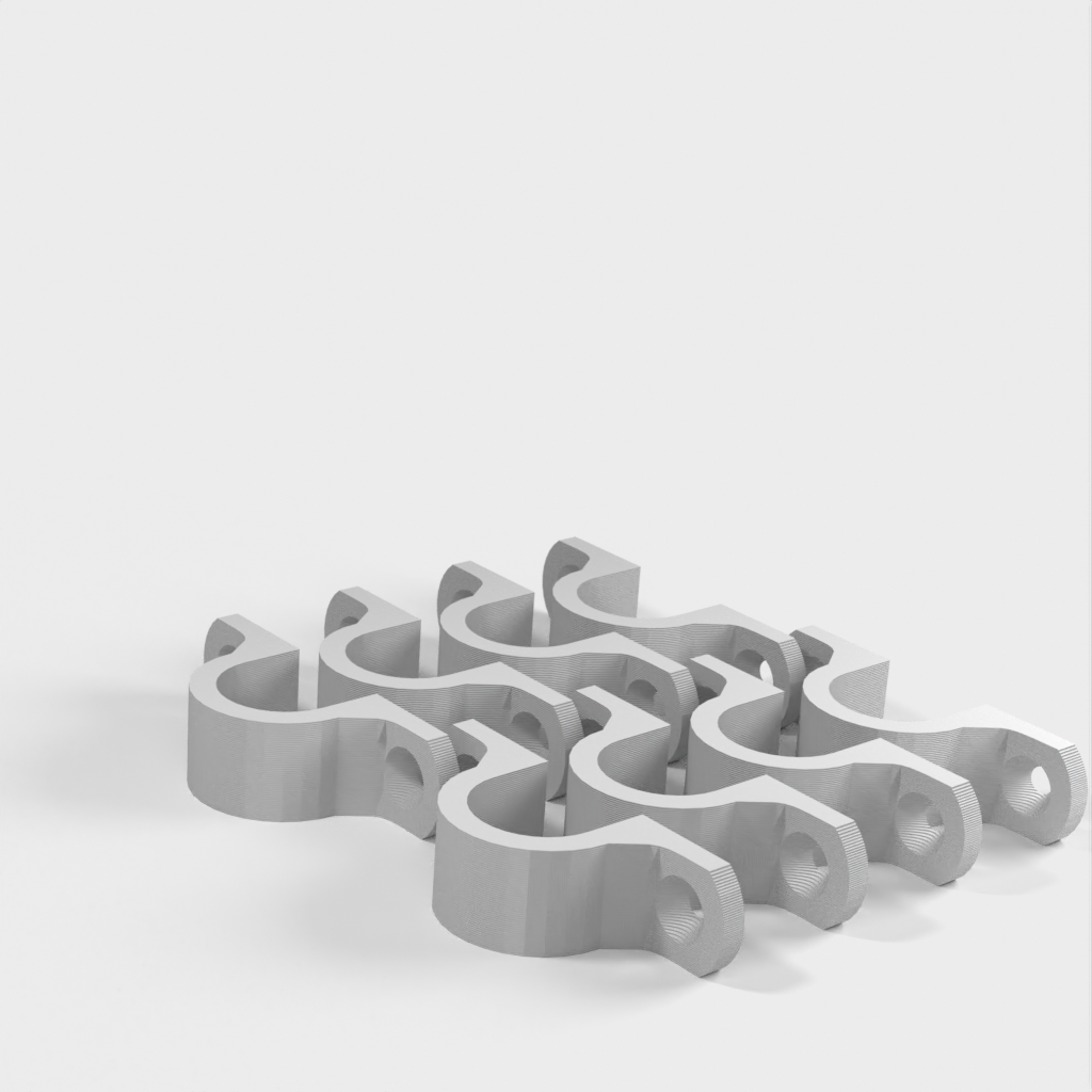 Jest to klips do kabli zaprojektowany w celu utrzymania porządku i organizacji kabli zwisających z sufitu w warsztacie. Klips jest wzmocniony na 90-stopniowym zagięciu dla dodatkowej wytrzymałości. Otwory montażowe są przeznaczone do standardowych wkrętów do płyt kartonowo-gipsowych i mają łeb stożkowy.