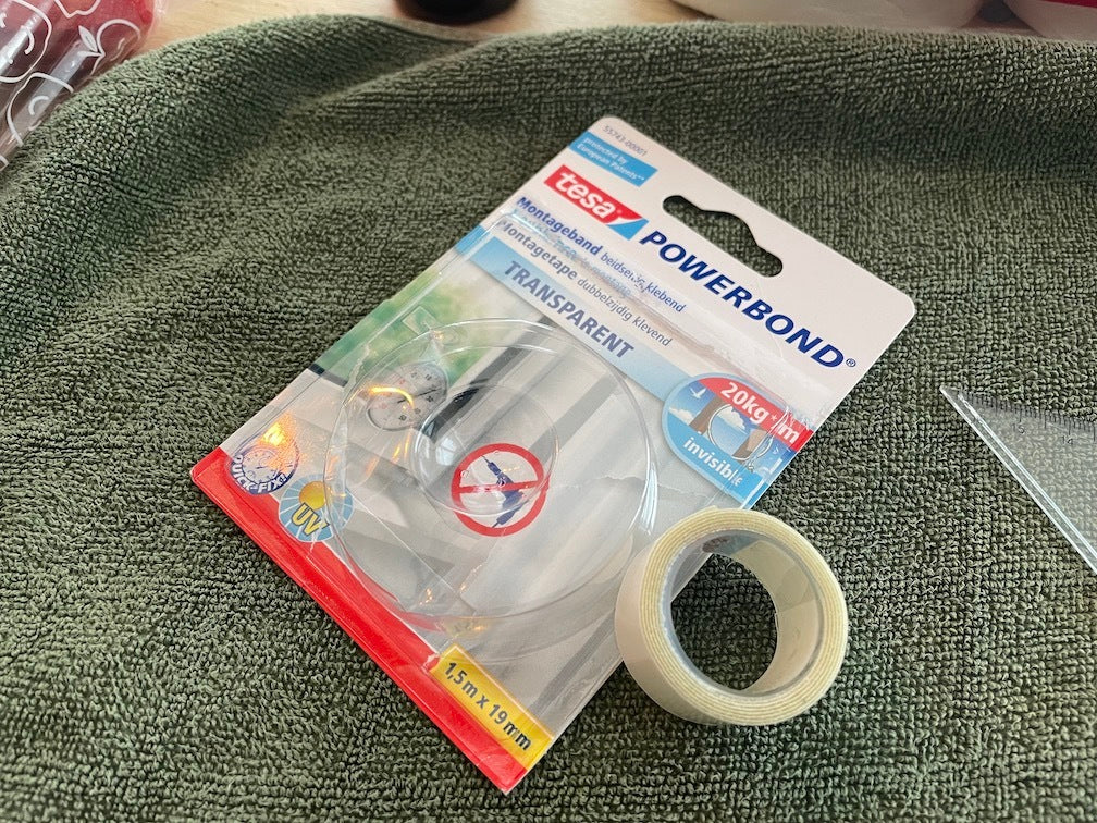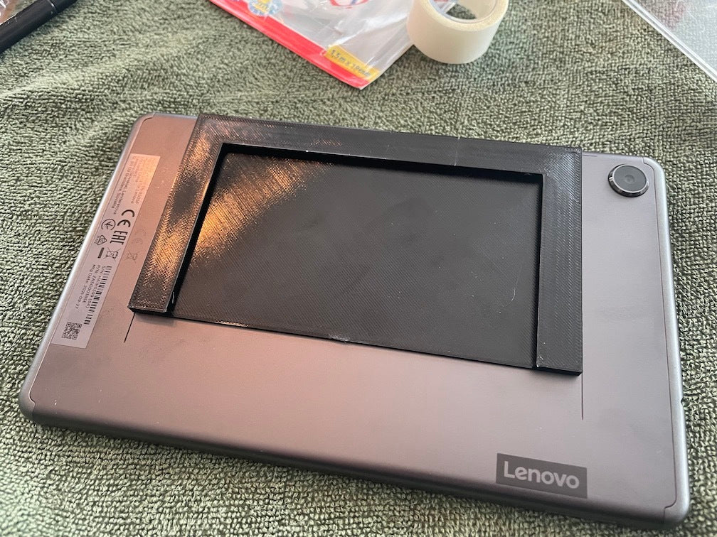 - Wymaga użycia mocnej taśmy dwustronnej (takiej jak Tesa Powerbond) do przymocowania z tyłu tabletu.