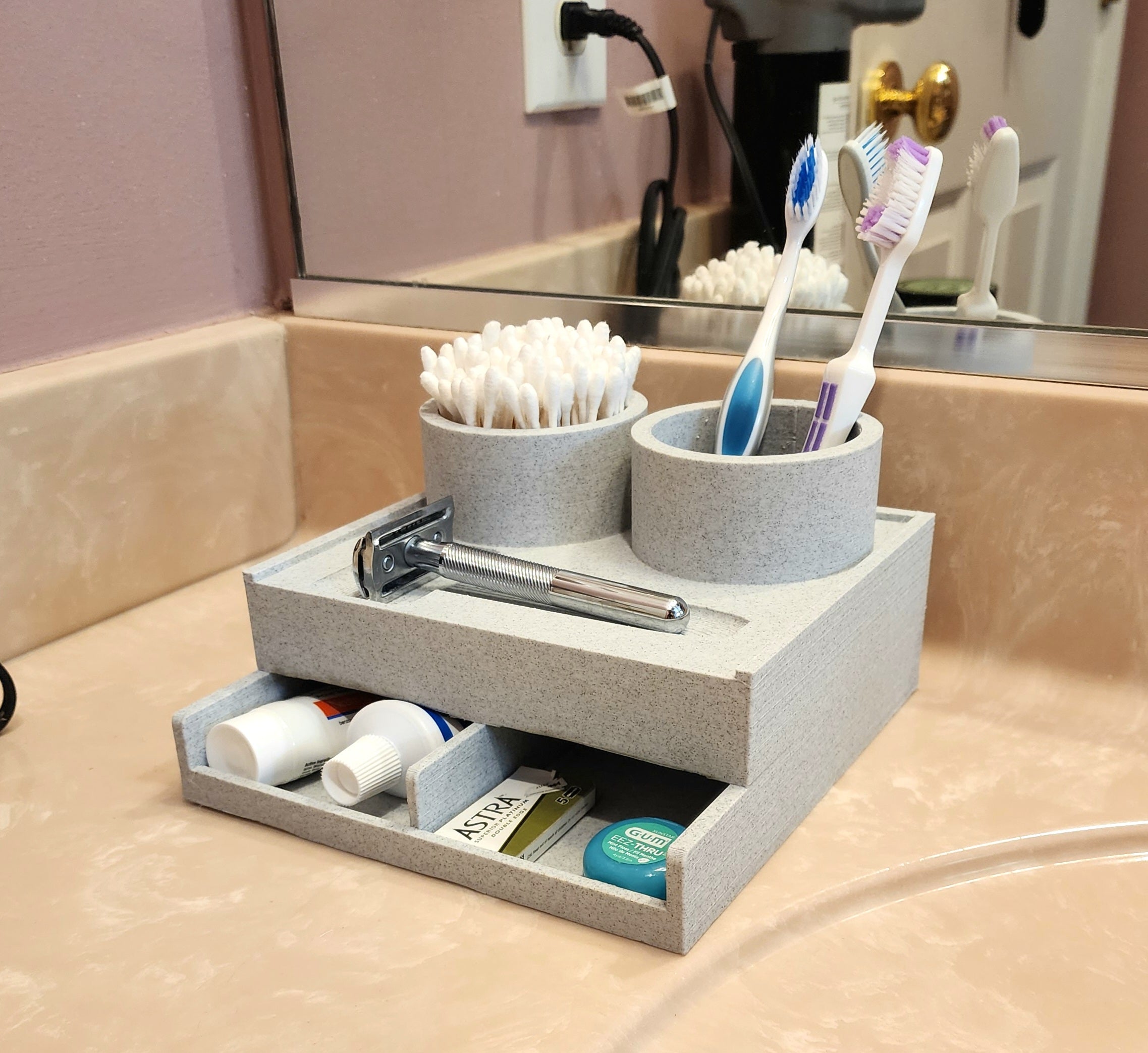 Przekształć swoją łazienkę w zorganizowane i uporządkowane pomieszczenie dzięki temu inteligentnemu organizerowi do zlewu Catch-All. Zaprojektowany, aby zmaksymalizować przestrzeń wokół umywalki, organizer ten oferuje zintegrowane rozwiązanie dla wszystkich Twoich codziennych potrzeb. Znajdziesz tu dedykowane przegródki na szczoteczki do zębów, golarkę i waciki, a także praktyczną szufladę, która idealnie nadaje się do przechowywania leków, pasty do zębów lub zapasowych ostrzy do golenia.