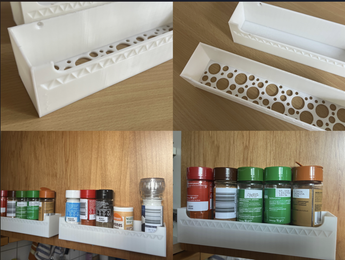 Ten organizer na przyprawy został zaprojektowany w celu optymalizacji przechowywania przypraw w kuchni. Można go łatwo zamontować po wewnętrznej stronie drzwi kuchennych, co zwalnia cenne miejsce na półkach i w szafkach. Organizer oferuje dwie różne opcje dna: jedną z otworami, które umożliwiają cyrkulację powietrza dla niektórych przypraw, oraz jedną z pełnym dnem do bardziej ogólnego przechowywania przypraw. Daje to elastyczność w uporządkowaniu asortymentu przypraw w przejrzysty sposób, dzięki czemu są one łatwo dostępne podczas gotowania. Praktyczne rozwiązanie, które przyczynia się do bardziej zorganizowanego środowiska kuchennego i efektywnego przechowywania przypraw.