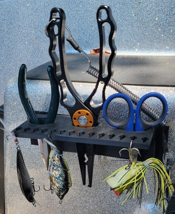 Ten praktyczny organizer do łodzi rybackiej został zaprojektowany, aby utrzymać porządek w narzędziach wędkarskich, takich jak haczyki i szczypce, oraz w zasięgu ręki. Jest to idealny dodatek dla każdego wędkarza, który chce zoptymalizować przestrzeń i zminimalizować bałagan podczas łowienia.