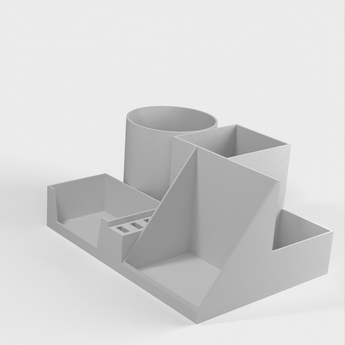 Jest to organizer na biurko z nadrukiem 3D, który służy jako funkcjonalne narzędzie zaprojektowane do przechowywania telefonu komórkowego, długopisów, ołówków lub markerów, narzędzi konserwacyjnych, pendrive'ów i wizytówek. Utrzymuje porządek na biurku.
