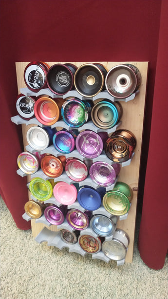 Półka została specjalnie zaprojektowana do przechowywania yo-yo o średnicy do 58 mm i szerokości 50 mm, co zapewnia bezpieczne i reprezentacyjne przechowywanie ulubionych egzemplarzy. Niezależnie od tego, czy masz dużą kolekcję do zorganizowania, czy po prostu chcesz zaprezentować kilka wybranych modeli, ten wieszak oferuje praktyczny i estetyczny sposób przechowywania yo-yo, bez zajmowania zbyt dużej cennej przestrzeni w Twoim domu.