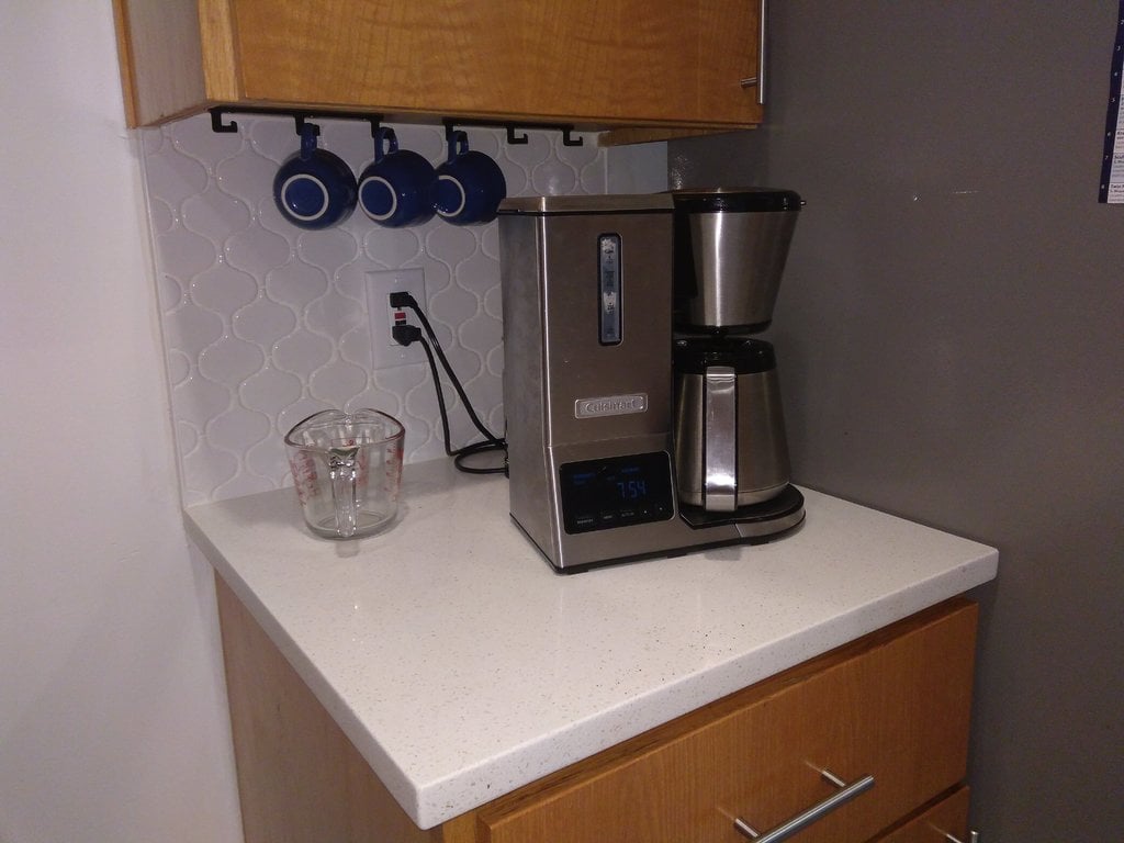 - Optymalizuje przestrzeń w szafkach, zawieszając filiżanki pod szafką