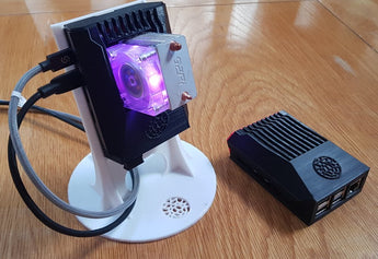 Podkręcona obudowa Raspberry Pi 4 z uchwytem na dysk SSD i podstawką