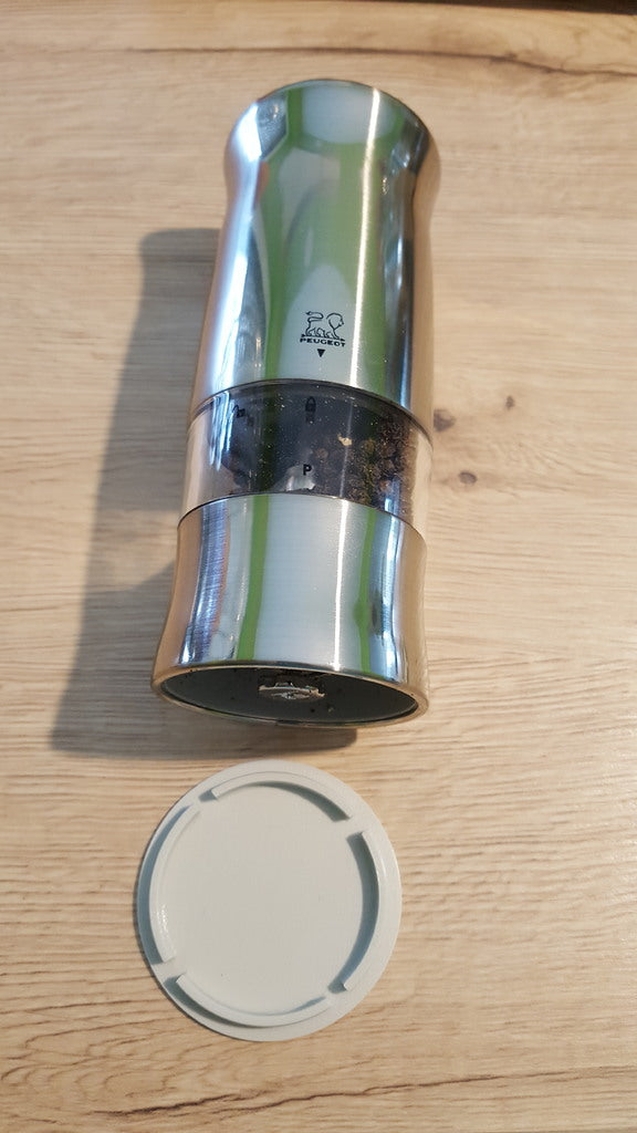 Ta srebrna pokrywka pasuje do serii młynków do pieprzu Peugeot ZELI. Po użyciu młynka do pieprzu możesz łatwo zakryć go tą pokrywką, aby zapobiec rozsypywaniu się pieprzu na stół lub do szuflady. Praktyczne akcesorium do Twojej kuchni, które utrzyma ją w czystości i porządku.