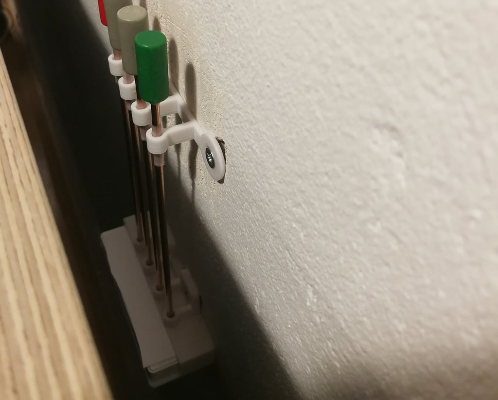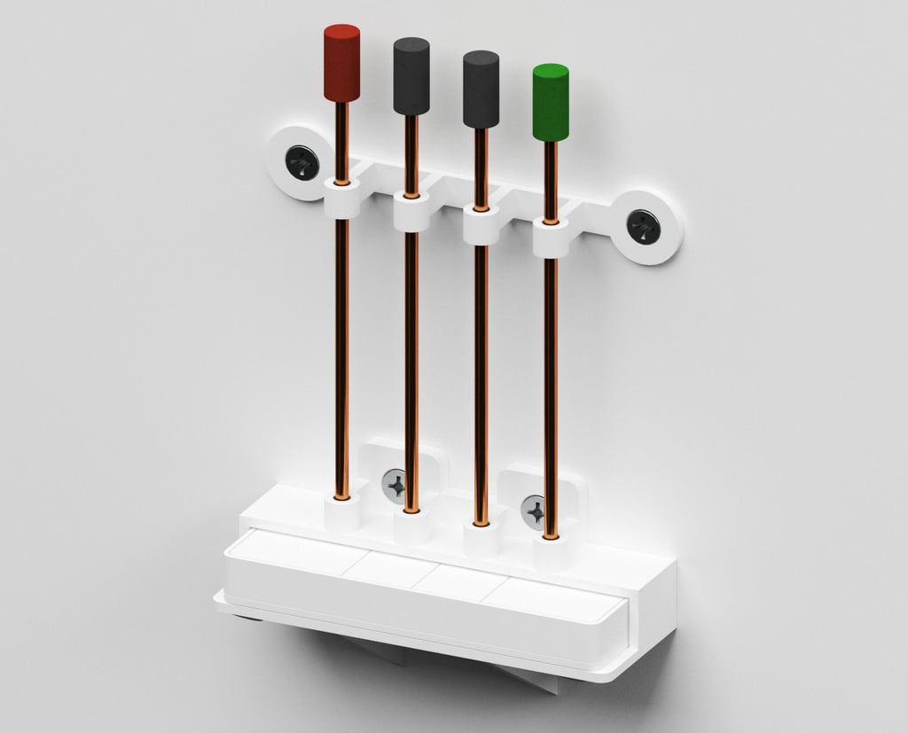 Przejściówka została zaprojektowana tak, aby ukryć istniejący ściemniacz Hue za minimalistyczną fasadą. Zamiast tradycyjnego pilota, masz możliwość zintegrowania małych, estetycznych przycisków – takich jak proponowane drewniane przyciski z miedzianymi prętami – bezpośrednio ze ścianą lub meblem. Stwarza to stałe i stylowe sterowanie oświetleniem, które idealnie pasuje do każdego pomieszczenia i jest szczególnie idealne obok łóżka, gdzie łatwy dostęp do światła jest niezbędny.