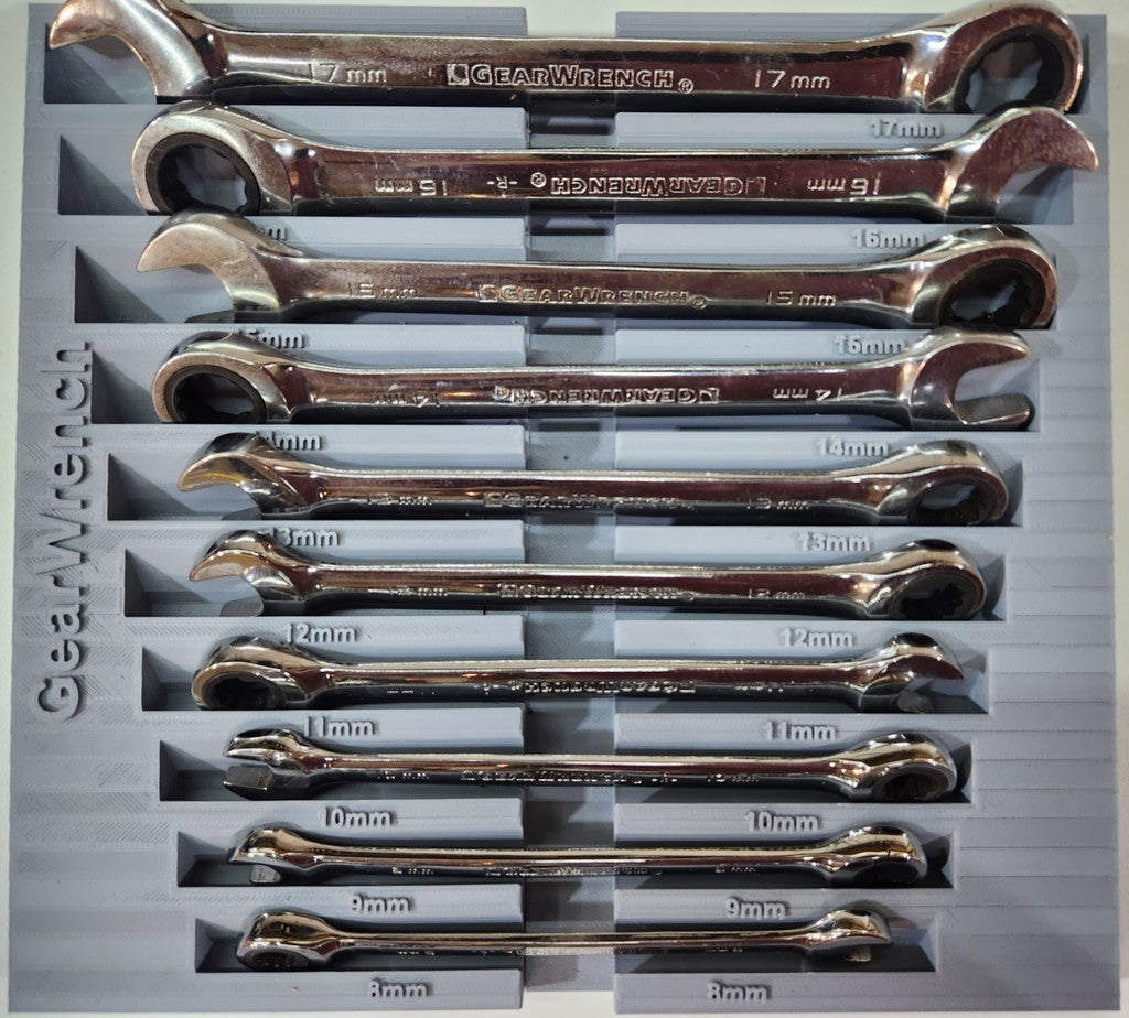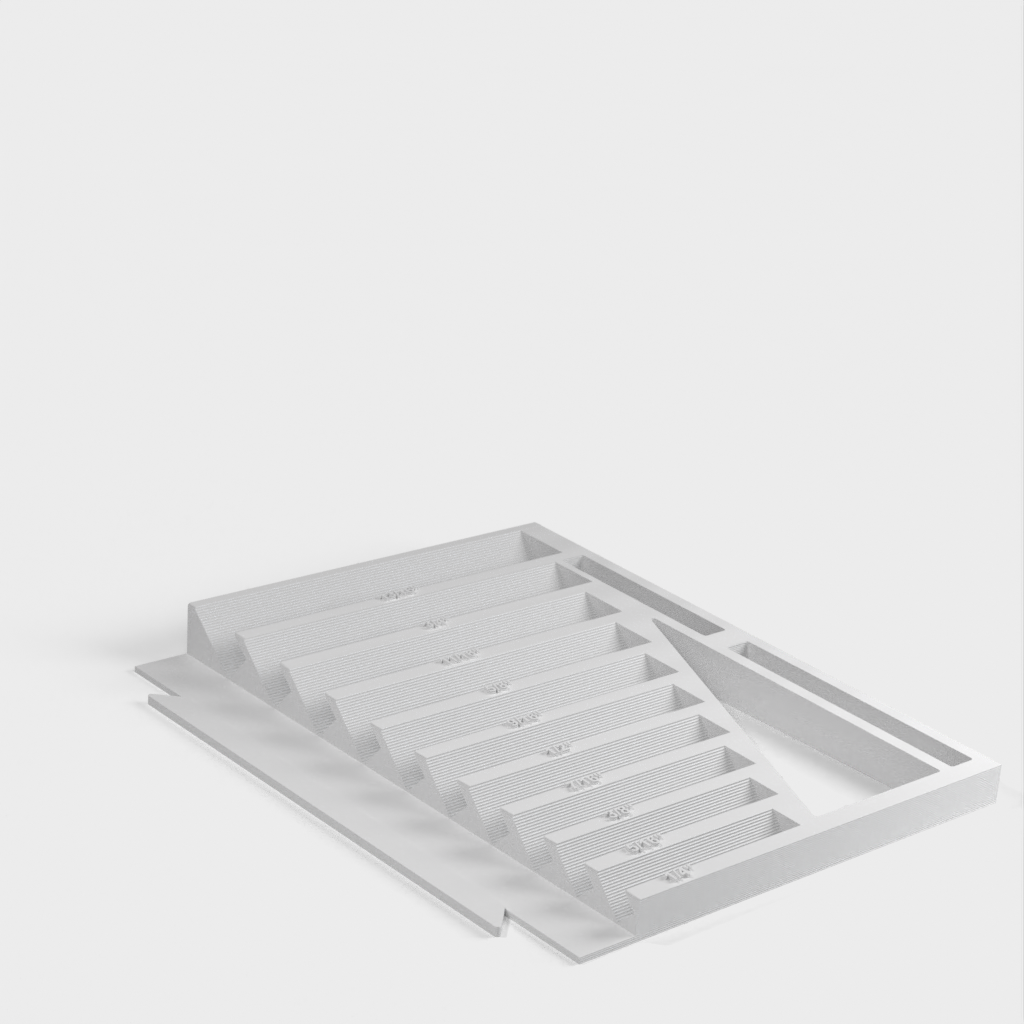 Uchwyt na zestaw kluczy płaskich, dzięki któremu możesz łatwo zorganizować swoje narzędzia i utrzymać porządek w warsztacie. Ten praktyczny uchwyt został zaprojektowany tak, aby idealnie pasował do szuflady, pomagając utrzymać porządek i organizację w warsztacie.