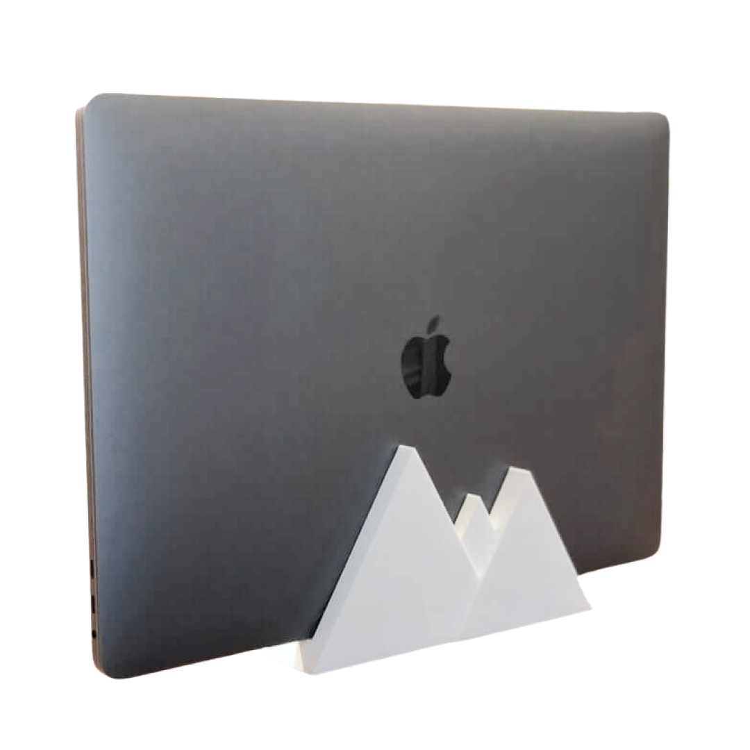 Prosty, ale solidny pionowy stojak do Macbooka Pro ze zintegrowanym górskim krajobrazem. Otwór, w którym umieszczony jest Macbook, ma szerokość 1,62 cm i dlatego pasuje do większości modeli.