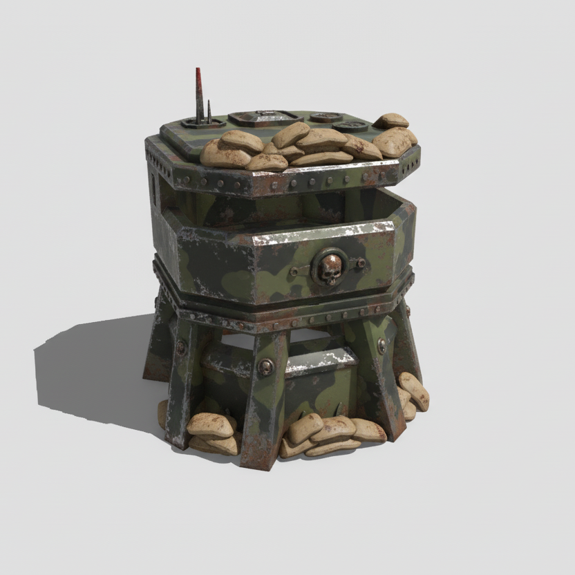 Ten model terenu Double Pillbox zapewnia Twoim jednostkom strategiczną pozycję obronną w ponurych grach wojennych na stole. Szczegółowa konstrukcja doskonale wpasowuje się w postapokaliptyczne scenariusze, zwiększając głębię i atmosferę Twoich bitew. Użyj go do ochrony kluczowych pozycji i uzyskania przewagi taktycznej nad wrogiem.