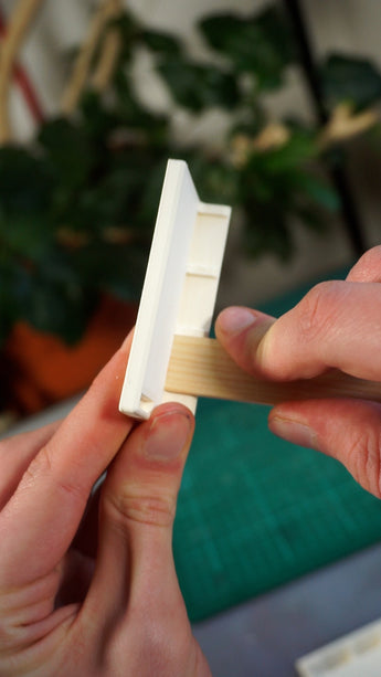 - Solidna konstrukcja z listwą drewnianą i końcówkami drukowanymi 3D