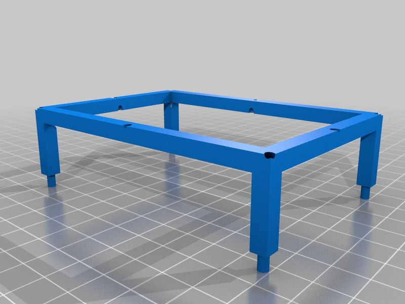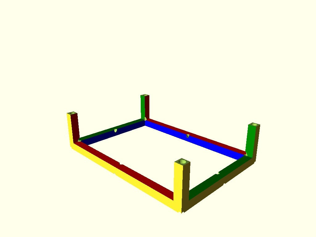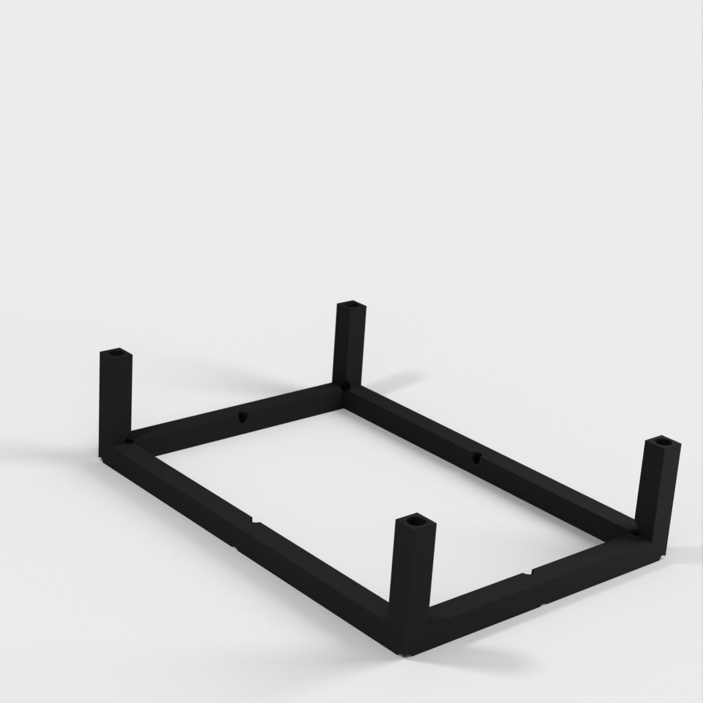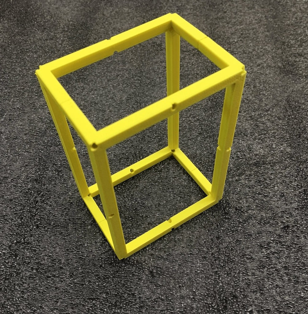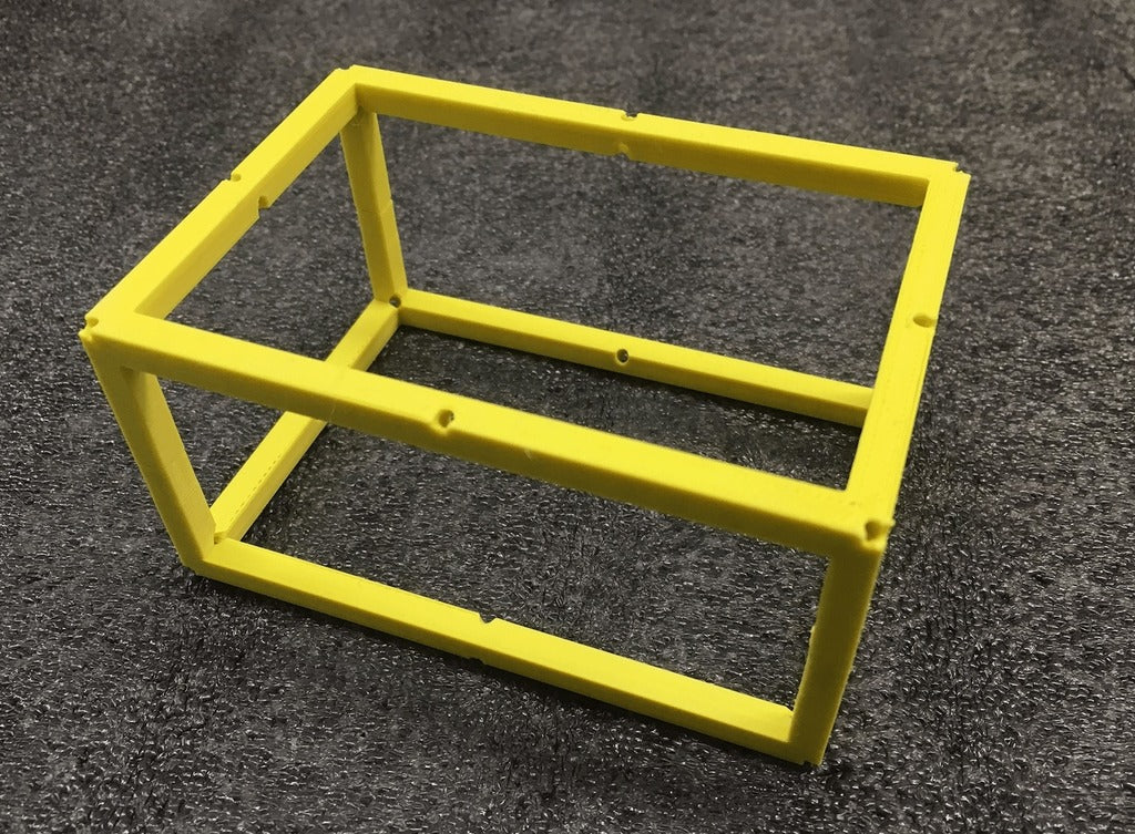 Ta prostopadłościenna rama składa się z dwóch części, dzięki czemu drukowanie jest łatwiejsze i szybsze - nie trzeba wykonywać żadnych podpór. Jest to projekt openscad, więc można go łatwo dostosować do własnych potrzeb. Dołączony plik .stl ma następujące wymiary (wysokość, szerokość, długość): 50x70x100mm