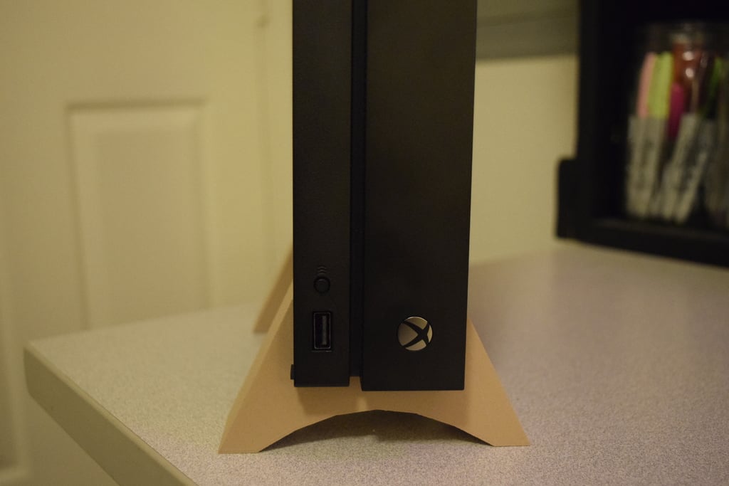 - Umożliwia umieszczenie konsoli Xbox One X w pionowej, oszczędzającej miejsce pozycji.
