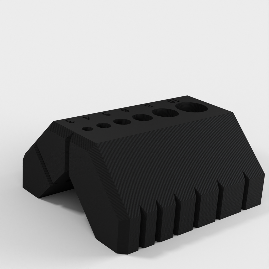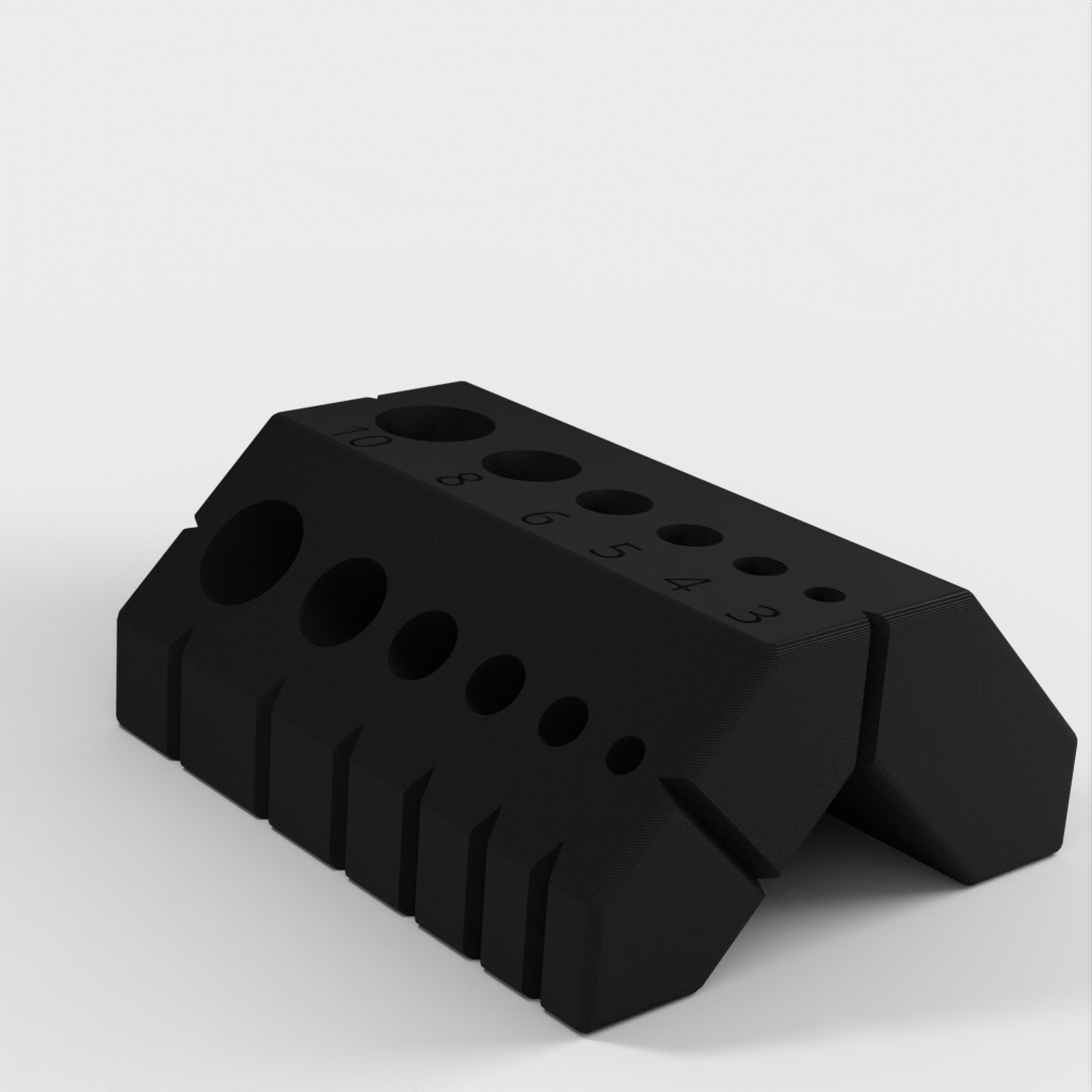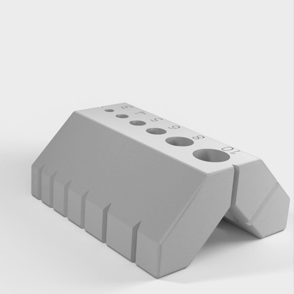 Ta przyjazna dla użytkownika prowadnica wiertła pod kątem 90 i 45 stopni została zaprojektowana tak, aby ułatwić wiercenie na krawędziach i prętach. Zawiera również specjalną funkcję, która pozwala na wiercenie idealnie umiejscowione w środku drewna na głębokości 2 cm.