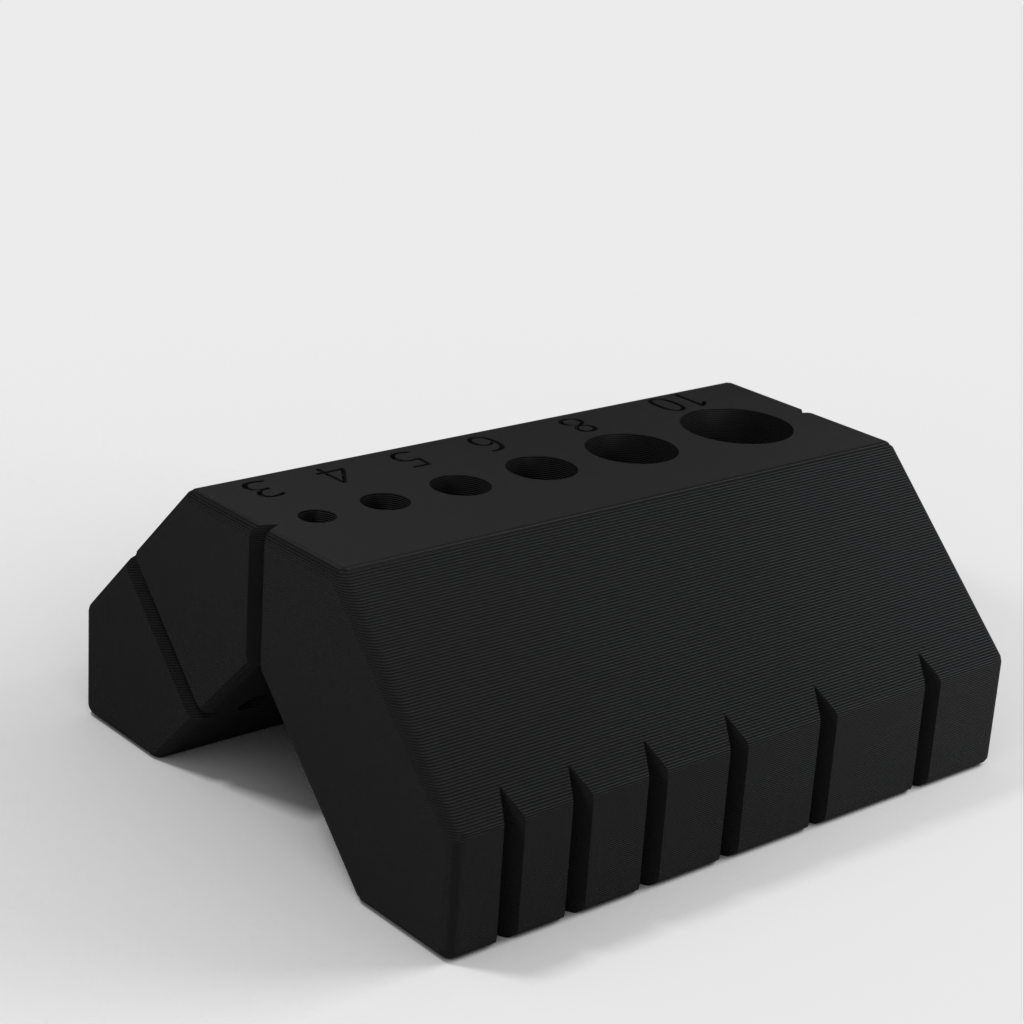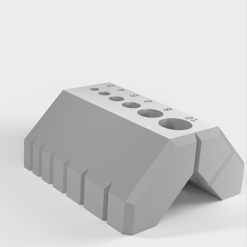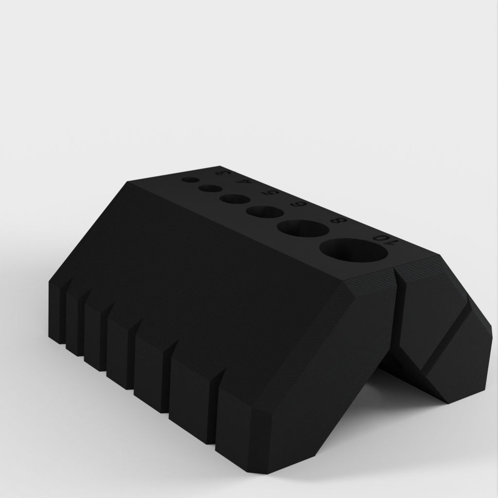 Ta przyjazna dla użytkownika prowadnica wiertła pod kątem 90 i 45 stopni została zaprojektowana tak, aby ułatwić wiercenie na krawędziach i prętach. Zawiera również specjalną funkcję, która pozwala na wiercenie idealnie umiejscowione w środku drewna na głębokości 2 cm.