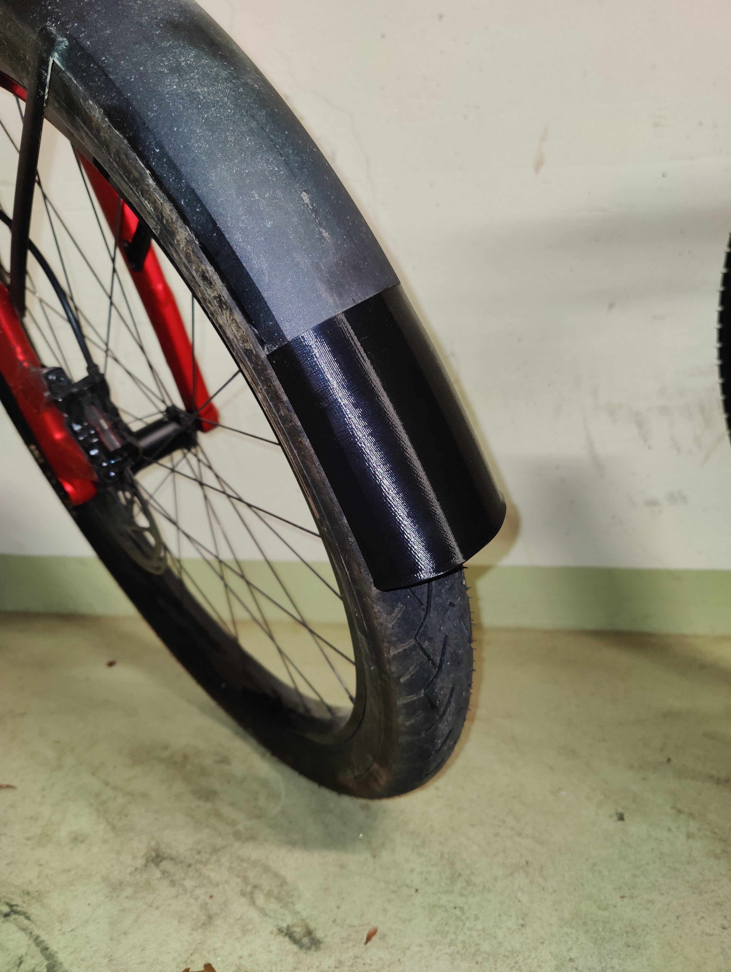 Przedłużenie dodaje 8 cm do przedniego błotnika roweru i jest o 1 cm szersze u dołu, co optymalizuje ochronę przed rozpryskami. Konstrukcja, która składa się z trzech części, jest łatwa do zmontowania i tworzy solidną całość. W przeciwieństwie do standardowych części, które są po prostu zatrzaskiwane, to przedłużenie jest bezpiecznie mocowane za pomocą śrub, co zapewnia, że pozostanie na swoim miejscu w każdych warunkach jazdy. Istniejące otwory w przednim błotniku roweru można wykorzystać do prostej i nieskomplikowanej instalacji.