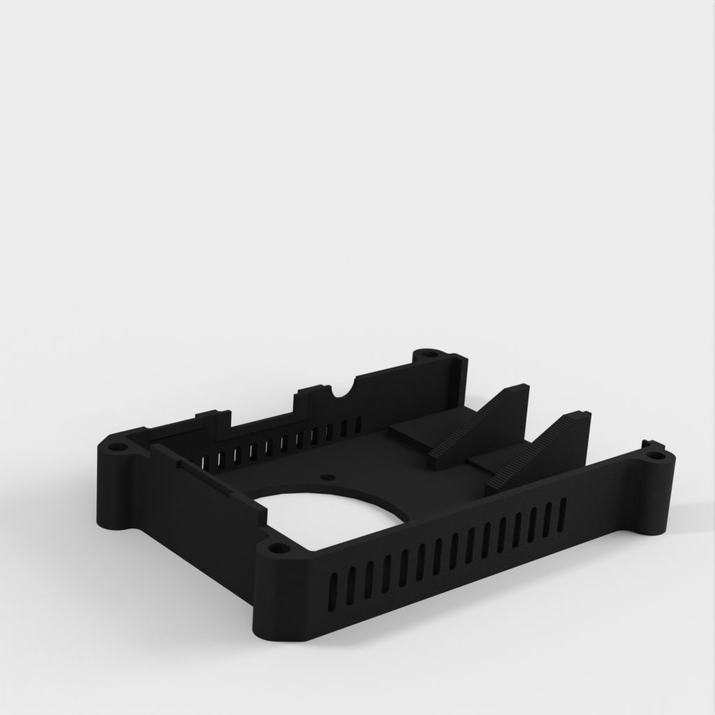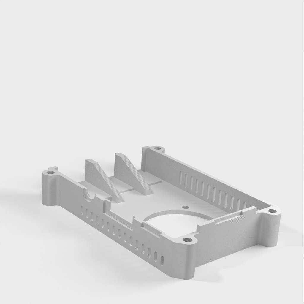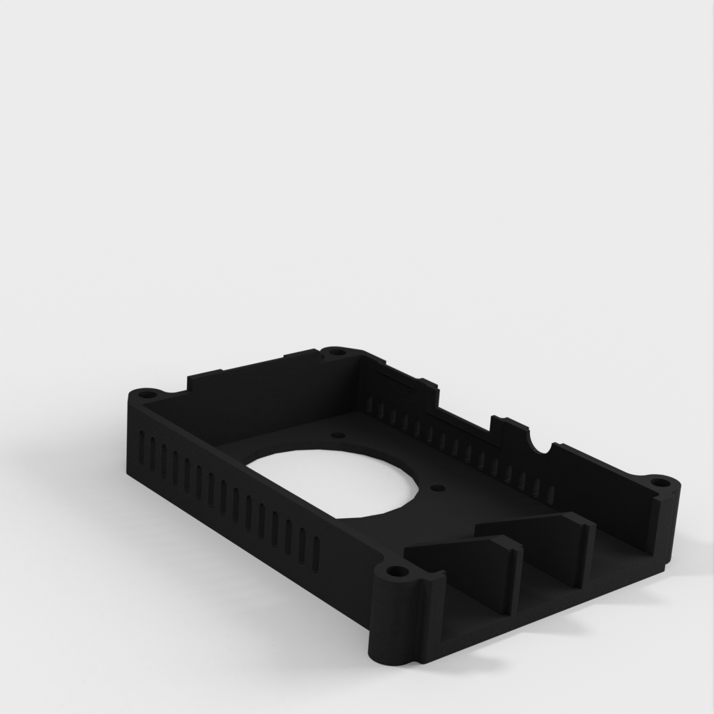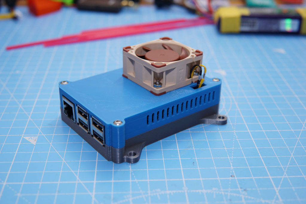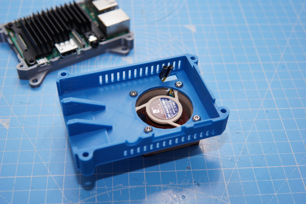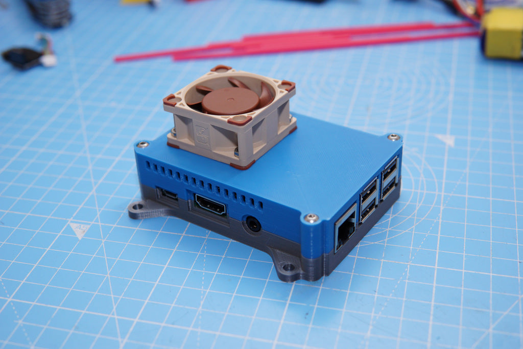 Jest to obudowa dla Raspberry Pi 3B z wentylatorem 40 mm, która pasuje do radiatora Kintaro. Obudowa redukuje dystansy na dole, dzięki czemu Pi pozostaje poziomo pomimo użycia nakrętek i śrub M2 do montażu radiatora. Ponadto obudowa zapewnia miejsce na wentylator 40 mm i otwory wentylacyjne na górze, które są wystarczająco wysokie, aby zmieścić się nad radiatorem. Do obudowy można dodać 40-milimetrowy wentylator Noctua NF A4x20, ale może on wymagać lekkiego popchnięcia, aby uruchomić się po podłączeniu do 5V przez nagłówek GPIO.