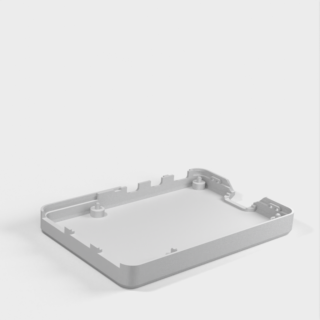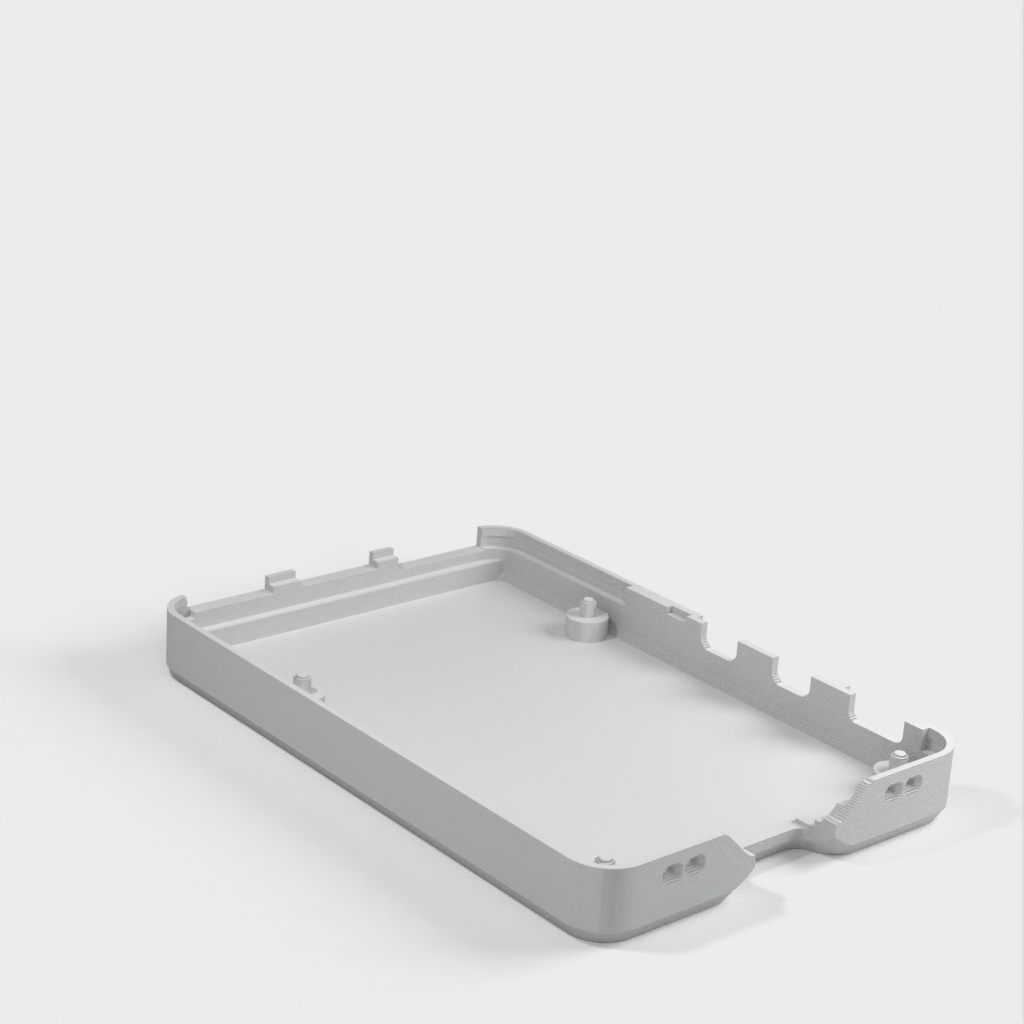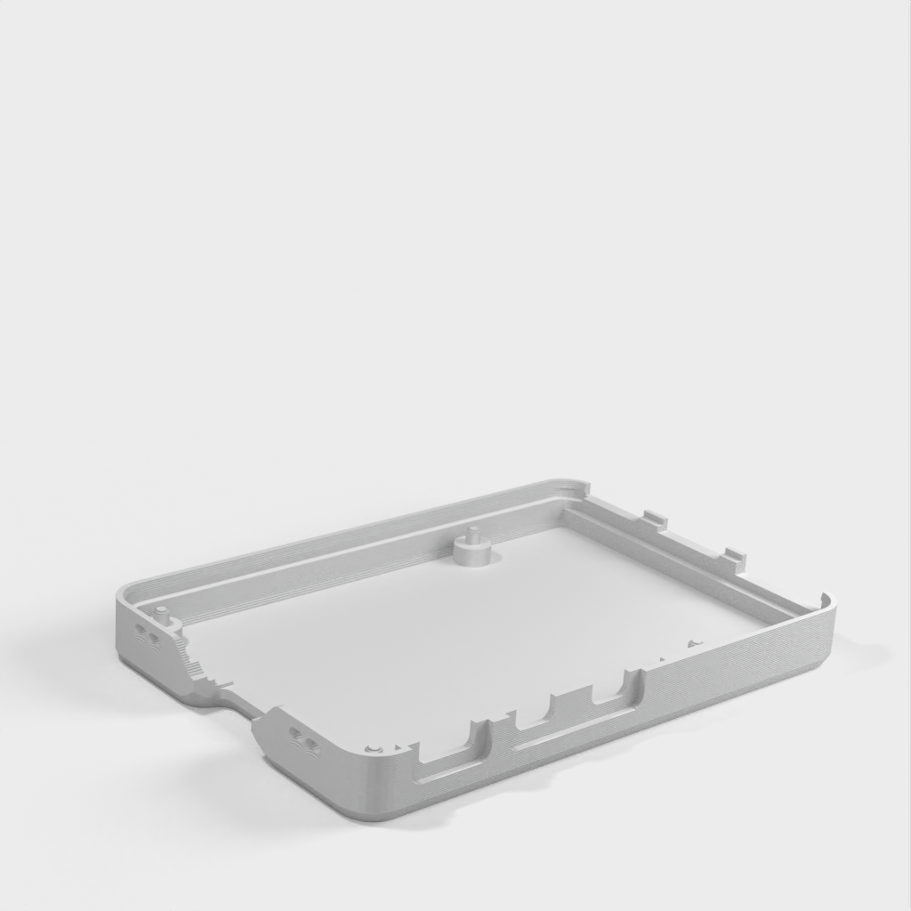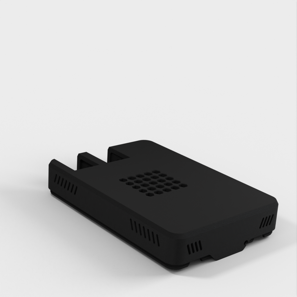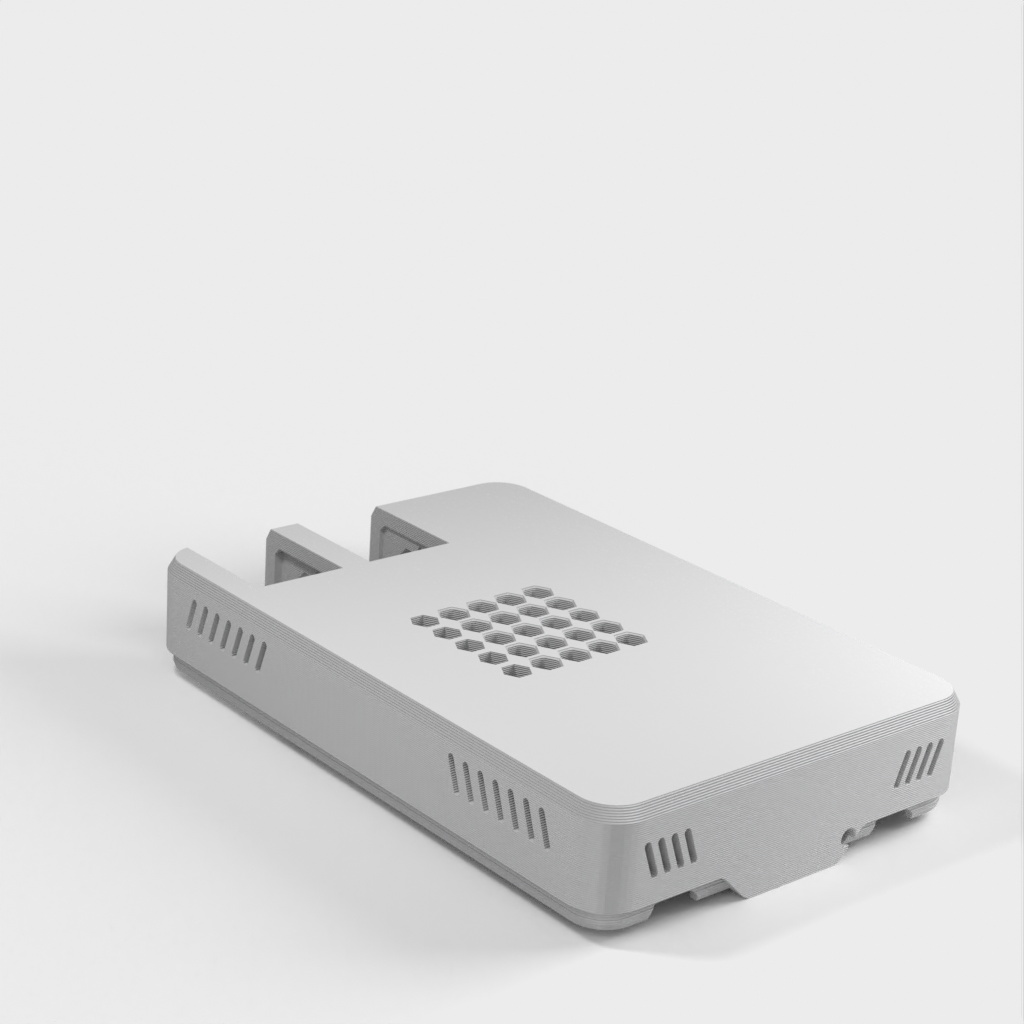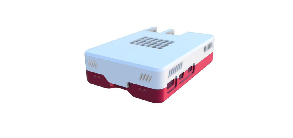 Prosta obudowa dla Raspberry Pi 5 z 2023 r. Zmiany obejmują zmianę położenia złączy USB i LAN, usunięcie gniazda słuchawkowego i dodanie małego otworu na przycisk resetowania. Dodano otwory wentylacyjne, aby pasowały do oryginalnej chłodnicy.