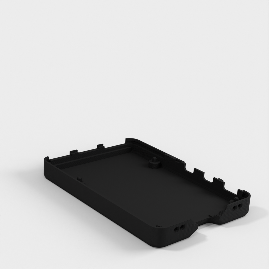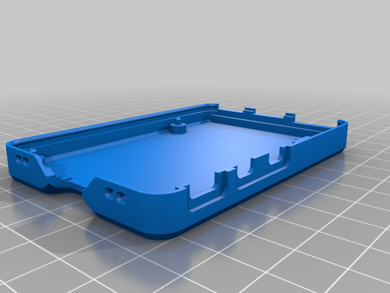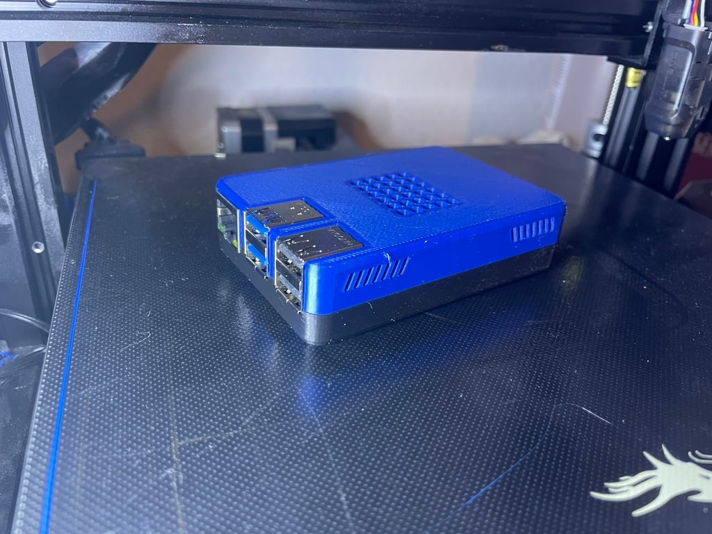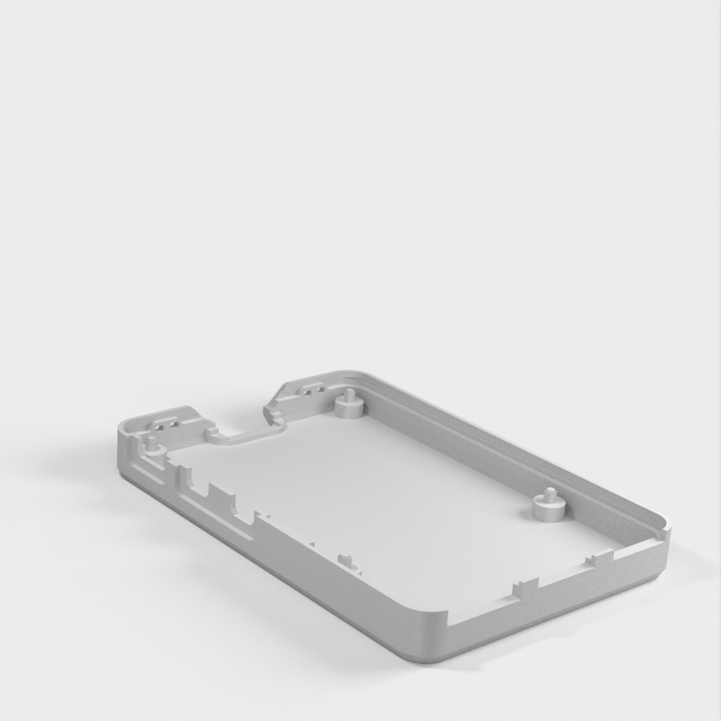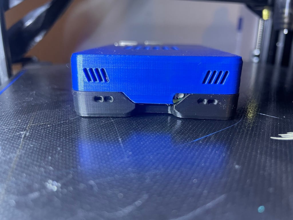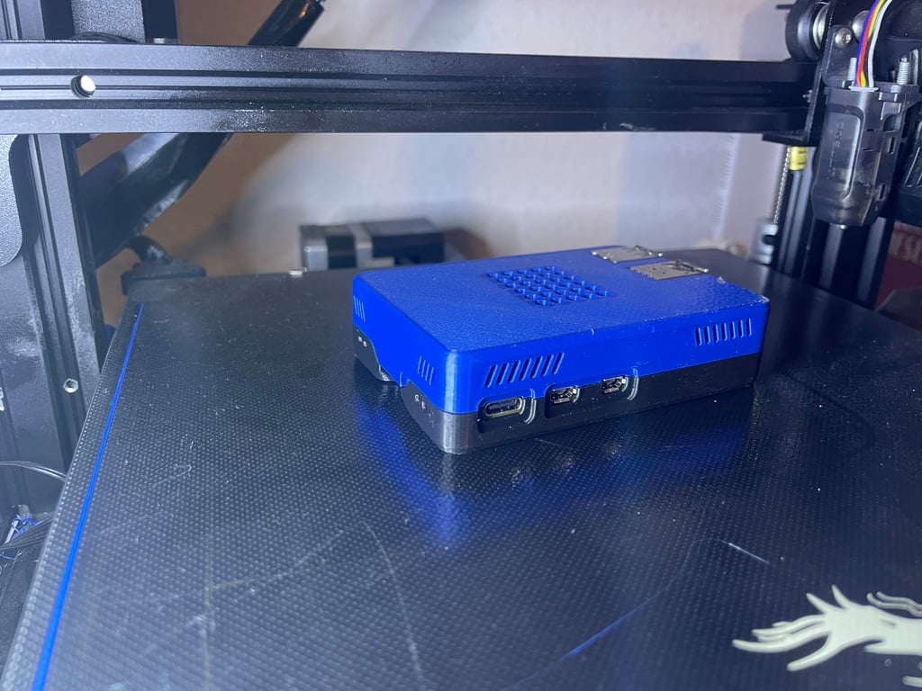 Prosta obudowa dla Raspberry Pi 5 z 2023 r. Zmiany obejmują zmianę położenia złączy USB i LAN, usunięcie gniazda słuchawkowego i dodanie małego otworu na przycisk resetowania. Dodano otwory wentylacyjne, aby pasowały do oryginalnej chłodnicy.