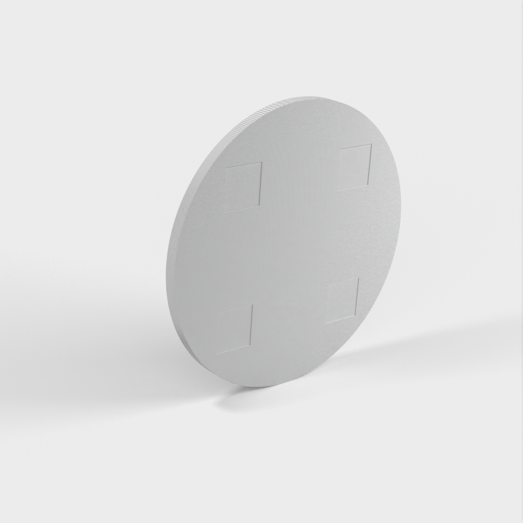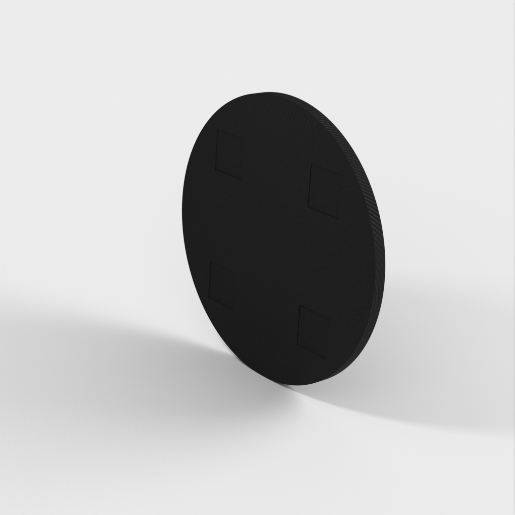 Na spodzie podstawy znajdują się wgłębienia na cienką taśmę dwustronną, dzięki czemu podstawa może leżeć płasko na biurku lub ścianie.