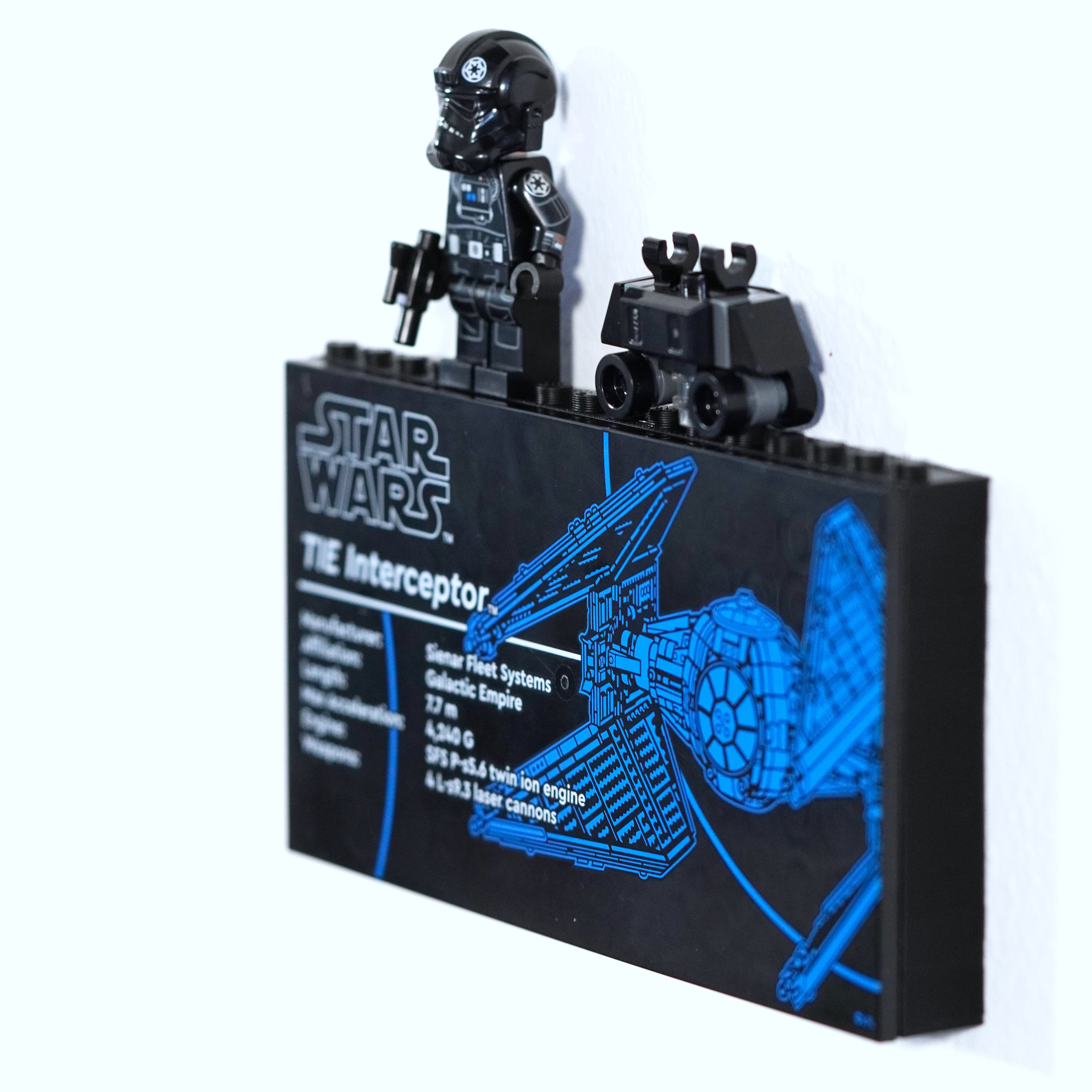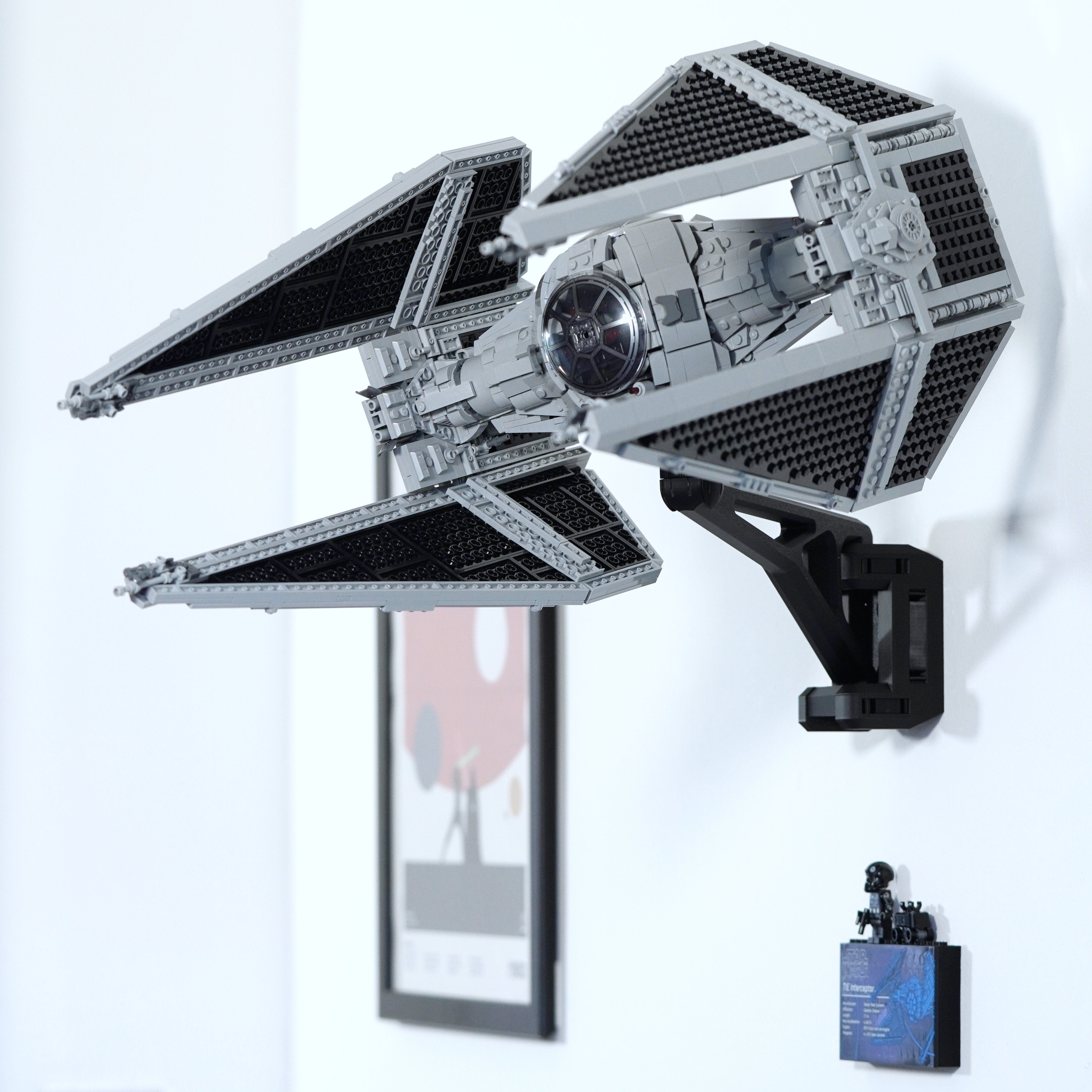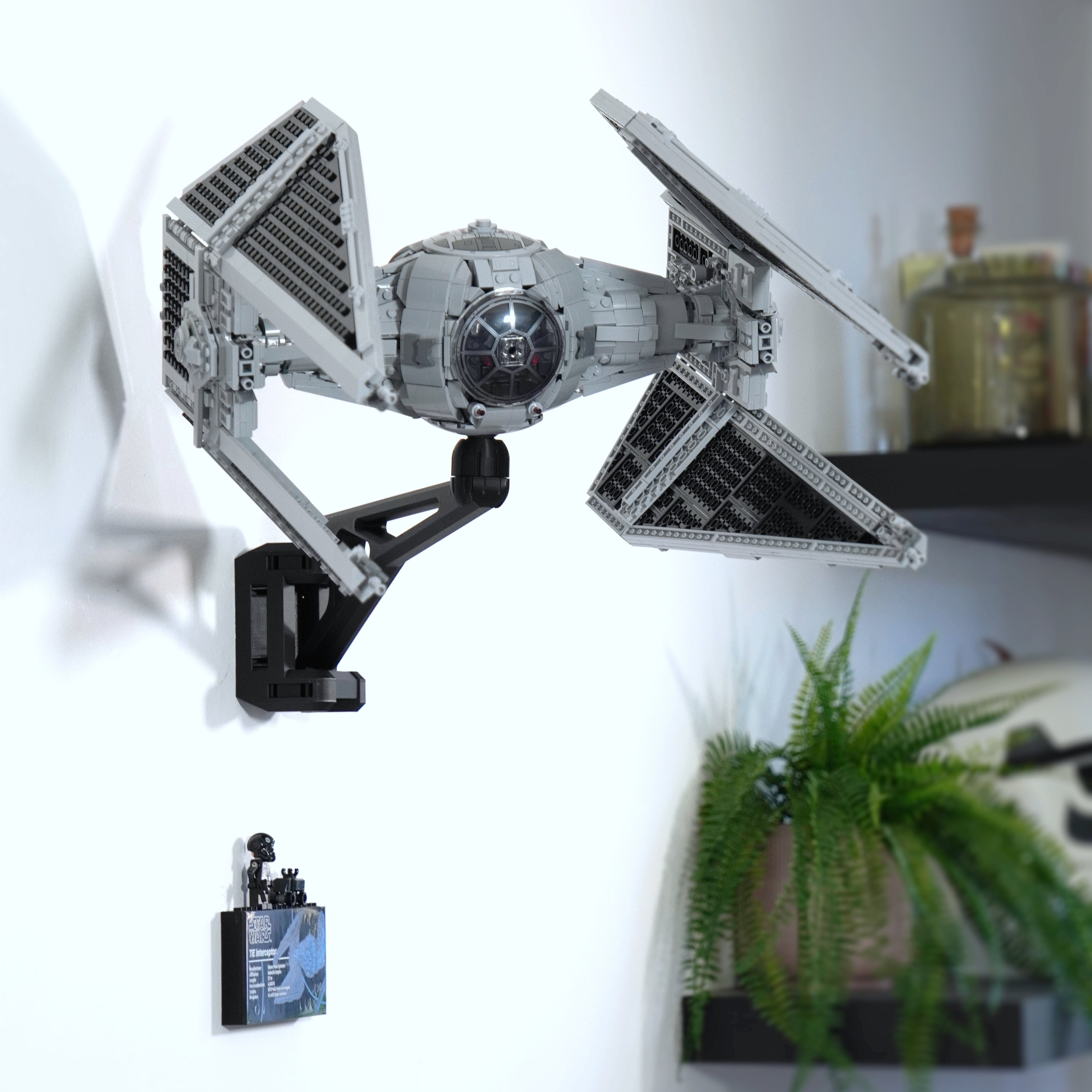 Ten regulowany uchwyt ścienny bezpiecznie i elegancko wyeksponuje Twój UCS Tie Interceptor. Posiada obrotowe ramię i przegub kulowy, które pozwalają na wszechstronne kąty i pozycje. Rozwiązanie to obejmuje również oddzielny uchwyt na tabliczkę informacyjną i minifigurki, co zapewnia kompletny wygląd Twojej kolekcji.
