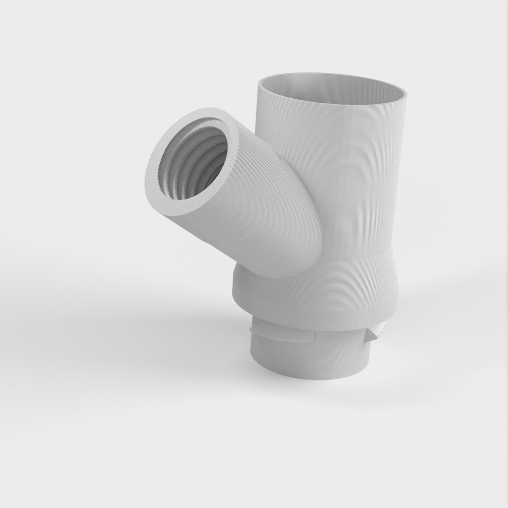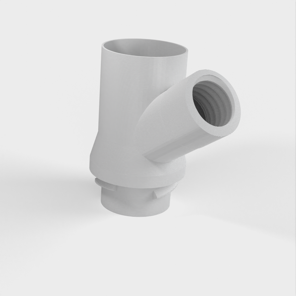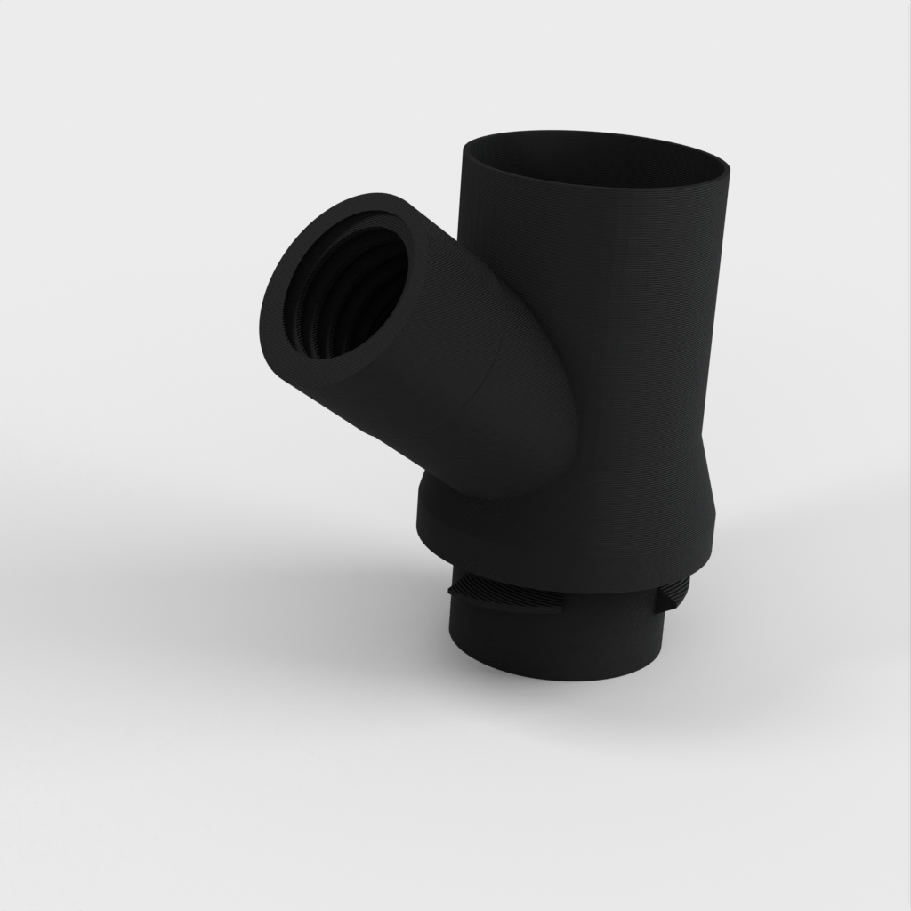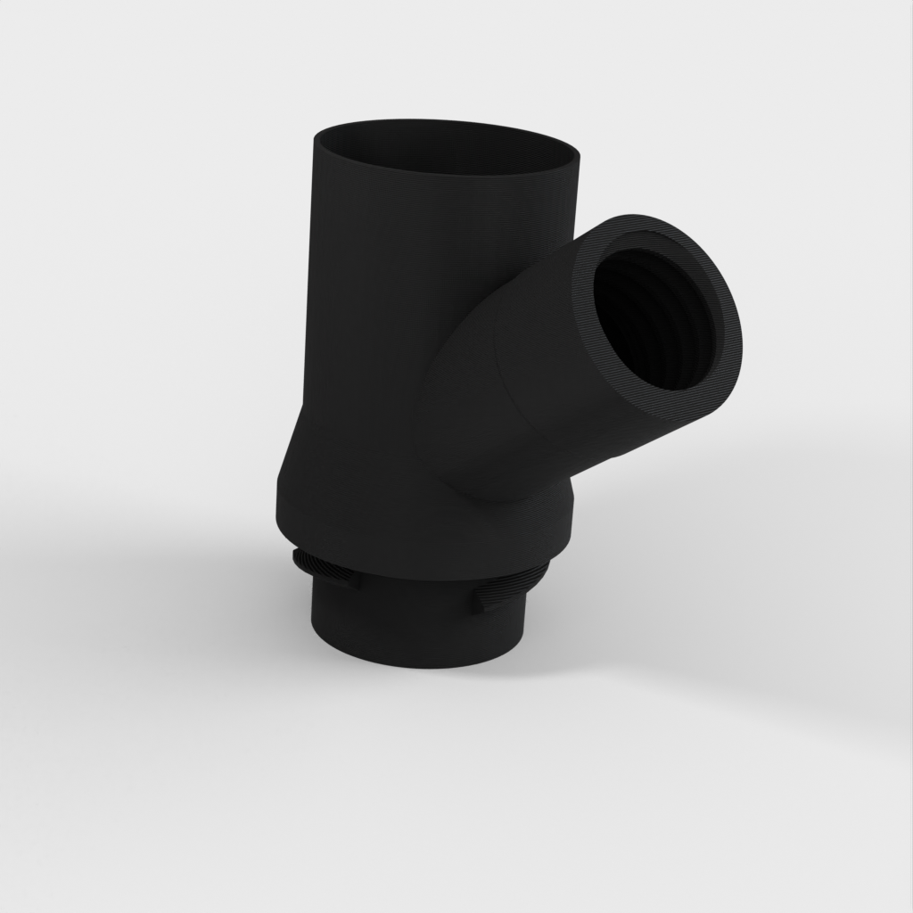 Ulepszenie biblioteki ujednoliconego odpylacza rLab: Adapter rLab v4.0 DeWalt DWE7492 zapewnia łączność z piłą stołową Dewalt DWE7492. Adapter widoczny na zdjęciach jest dodany do piły i posiada podłączony wąż odpylający o średnicach 50mm i 38mm.