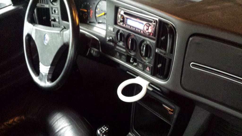 Oto uchwyt na kubek do klasycznego SAAB 900. Uchwyt na kubek zatrzaskuje się na popielniczce i pomieści większość rozmiarów pojemników na napoje. Powinien działać z każdym C900 z lat 1978-1993.