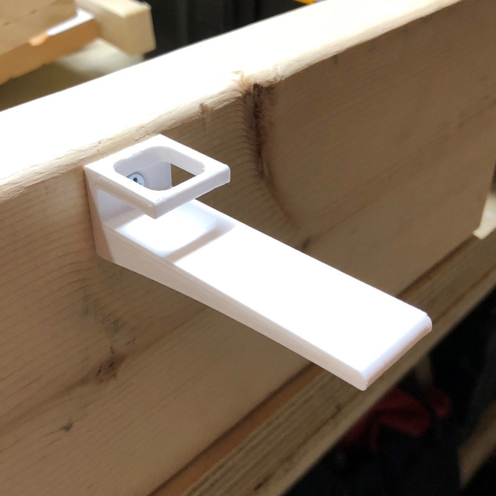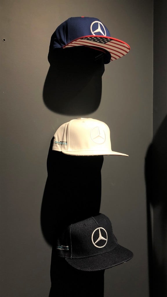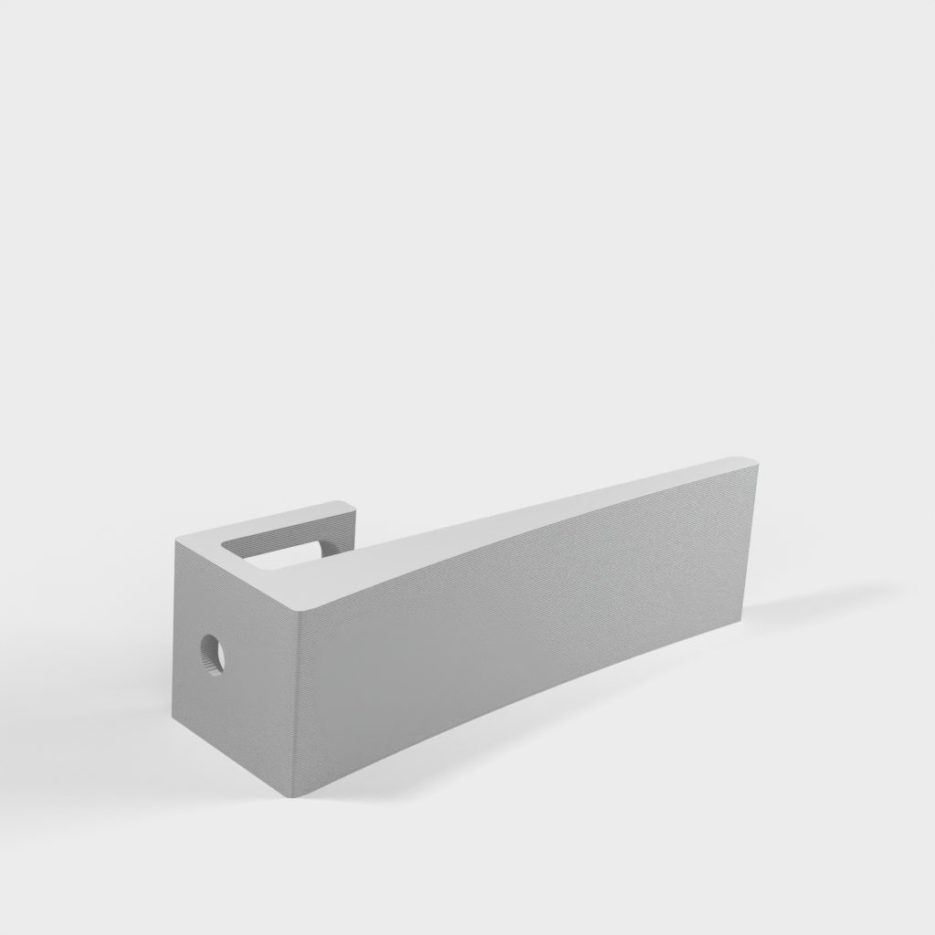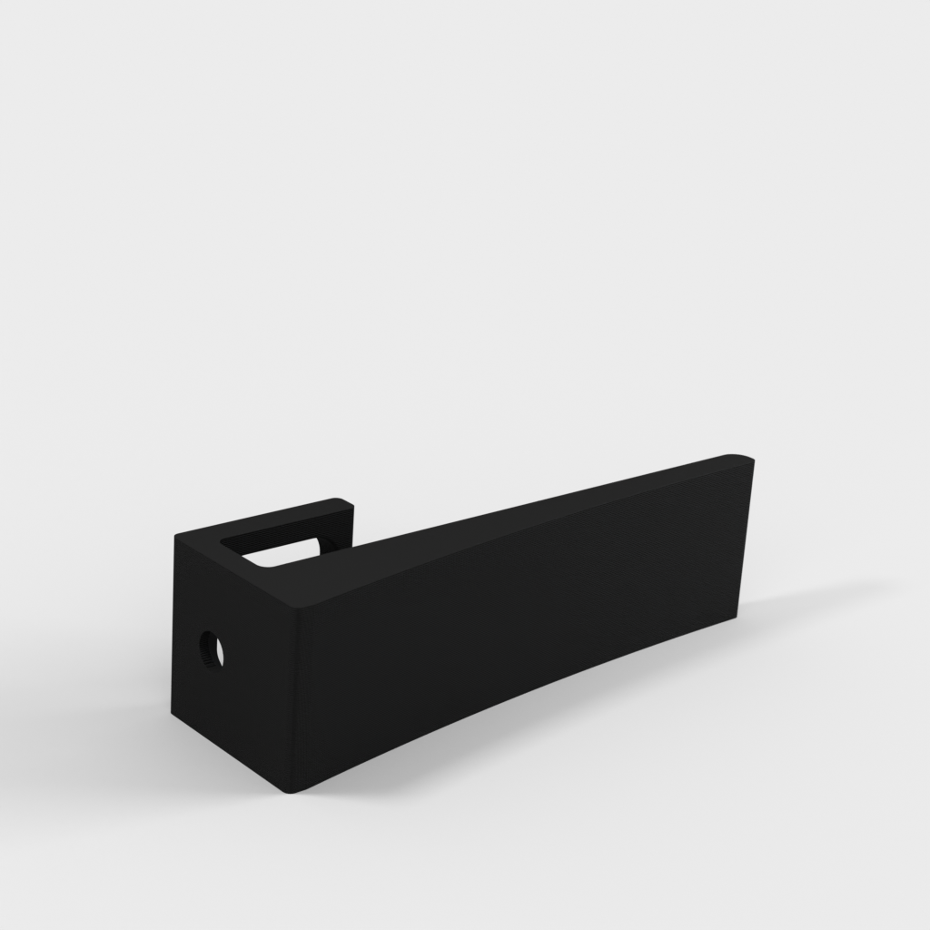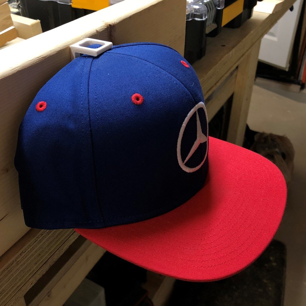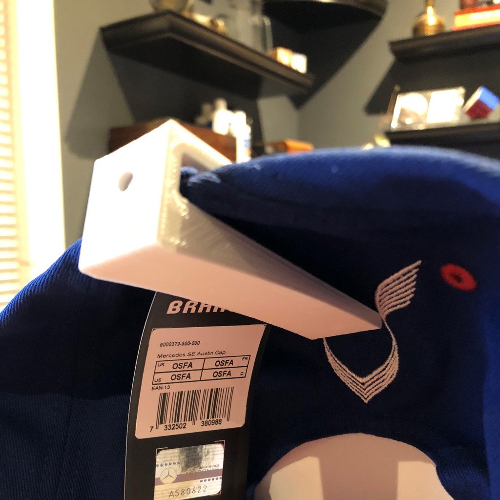 Ten montowany na ścianie uchwyt ekspozycyjny został zaprojektowany tak, aby elegancko prezentować sztywne czapki z daszkiem. Czapka jest luźno mocowana w górnej części wokół guzika, a dolne przedłużenie podtrzymuje resztę czapki. Tworzy to efekt unoszenia się w powietrzu, w którym uchwyt jest widoczny tylko z góry, co zapewnia minimalistyczny i dyskretny wygląd. Aby uzyskać najbardziej dyskretny wygląd, uchwyt można dopasować kolorystycznie do czapki.