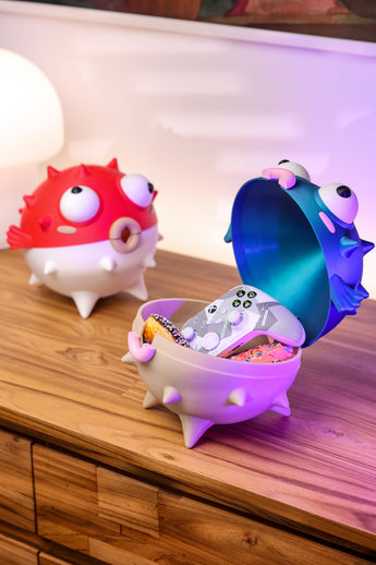 Ten uroczy pojemnik do przechowywania w kształcie rozdymki pomoże zorganizować Twoje biurko lub półkę. Użyj tego uroczego pojemnika do przechowywania ołówków, małych akcesoriów, a nawet kontrolera, dodając zabawny element dekoracyjny do swojego pokoju. Unikalny design stanowi urocze rozwiązanie do utrzymania porządku w swoich przedmiotach.