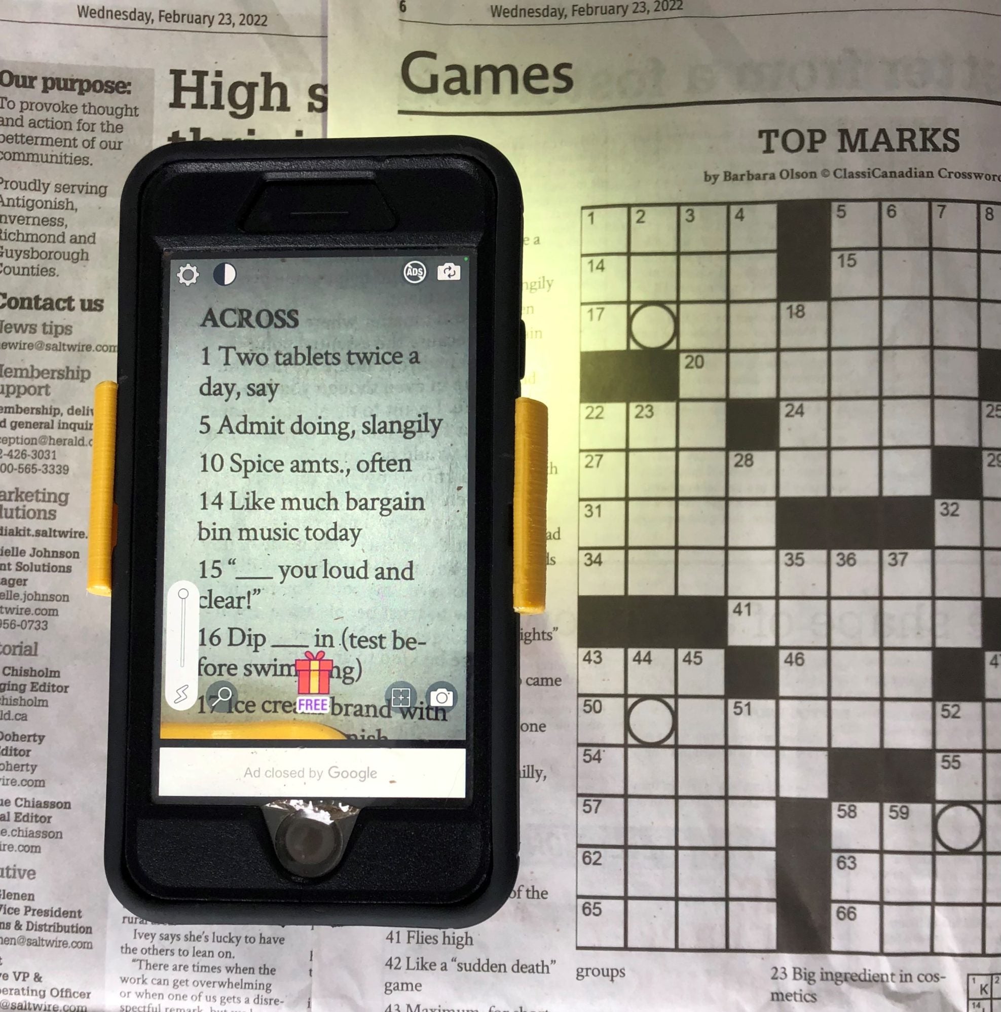 Jest to stojak na smartfon, który zamienia smartfon w szkło powiększające. Stojak jest niedrogim rozwiązaniem do podtrzymywania telefonu podczas używania go do powiększania rzeczy na ekranie. Ten stojak na smartfona jest szczególnie odpowiedni dla osób z zaburzeniami wzroku lub zręczności, ponieważ pomaga robić stabilne zdjęcia. Stojak pasuje do większości smartfonów o szerokości od 60 mm do 85 mm.