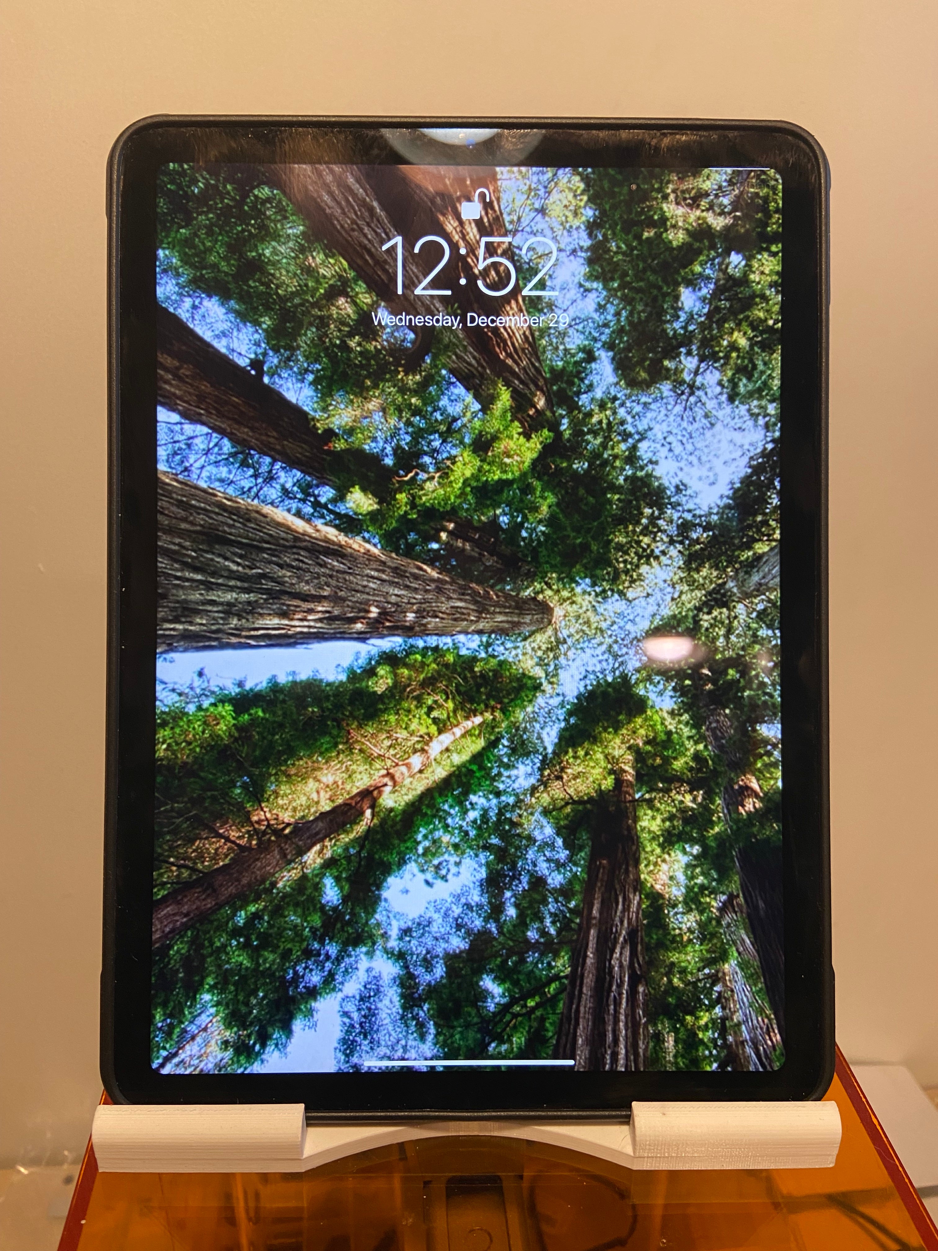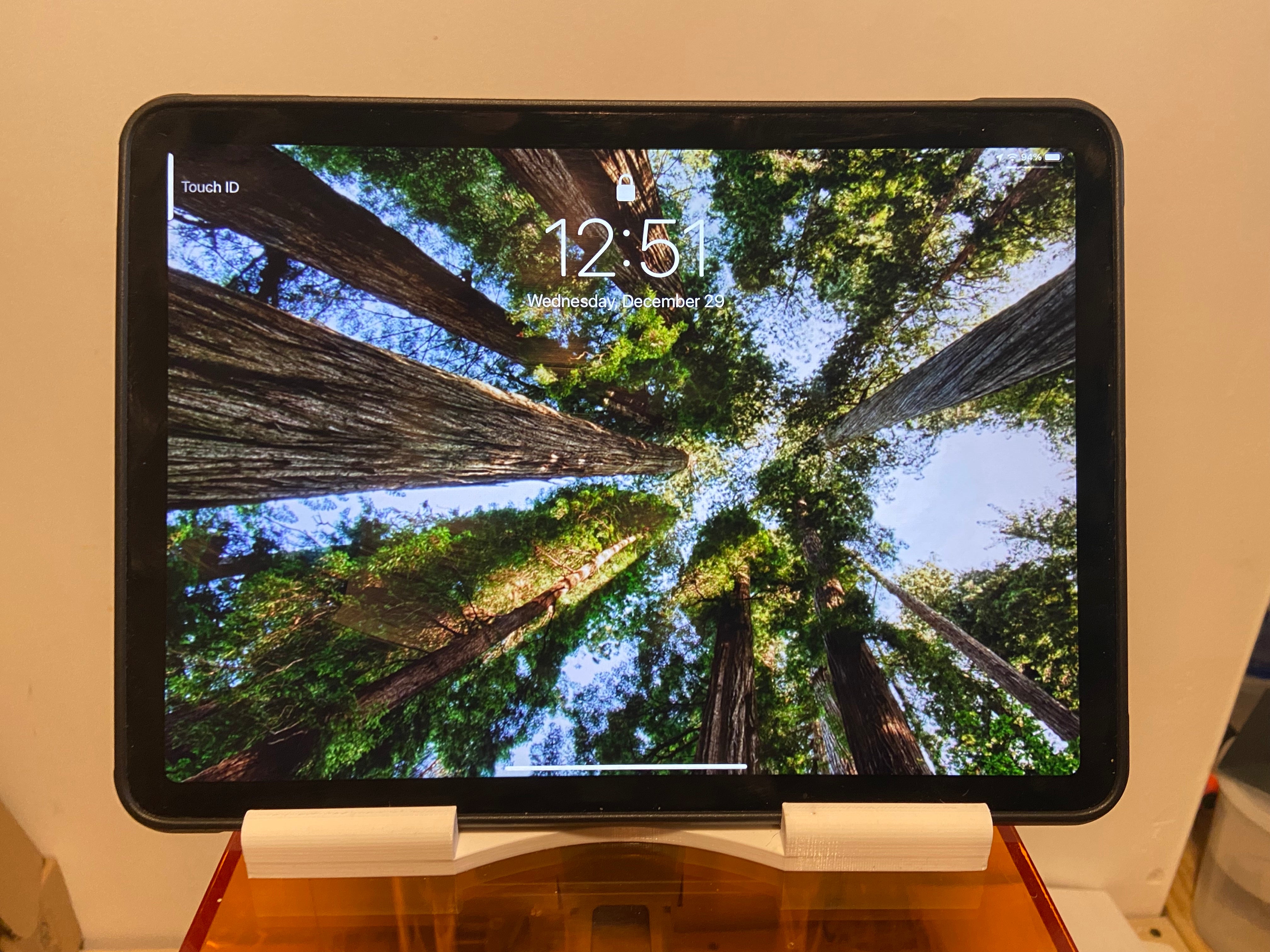 Wytrzymały stojak na iPada zaprojektowany, aby utrzymać iPada w miejscu podczas korzystania z niego. Duży kanał umożliwia korzystanie z podstawki nawet z etui ochronnym na iPadzie. Nie spadnie podczas naciskania ekranu podczas wybierania lub przesuwania. Ten produkt został zbudowany tak, aby wytrzymać wielokrotne użytkowanie. Zdjęcia przedstawiają podstawkę umieszczoną na drukarce żywicznej, ale została ona wydrukowana na Prusa MK3S.