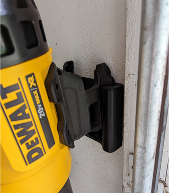 Montaż jest łatwy dzięki dwóm śrubom z łbem płaskim, a zaktualizowana wersja z pionowymi otworami montażowymi ułatwia przymocowanie go bezpośrednio do słupka w ścianie. Ten zajmujący niewiele miejsca uchwyt zapewnia, że dmuchawa do liści DeWalt jest zawsze łatwo dostępna i chroniona przed uszkodzeniami, a jednocześnie przyczynia się do bardziej uporządkowanej i funkcjonalnej przestrzeni roboczej.