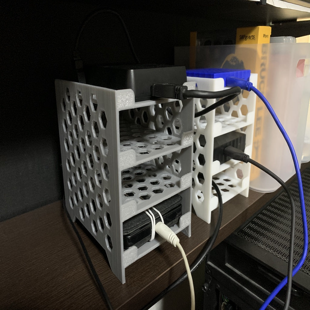 Prosty schowek na dyski zewnętrzne. Stojak pasuje do wszystkich modeli mniejszych niż 93 x 131 x 34 mm