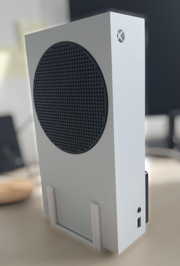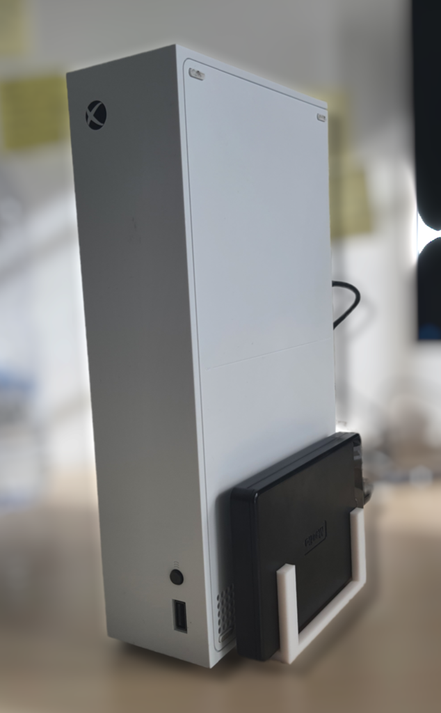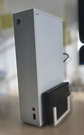 Ten stojak został zaprojektowany, aby stabilnie utrzymać konsolę Xbox Series S w pozycji pionowej. Integruje dedykowane miejsce na zewnętrzny dysk HDD/SSD, zapewniając, że dodatkowa pamięć pozostanie uporządkowana i bezpiecznie umieszczona obok konsoli. Stojak pomaga stworzyć uporządkowaną przestrzeń do gier, ponieważ zarówno konsola, jak i pamięć są zebrane w jednym miejscu. Został specjalnie zaprojektowany do przechowywania zewnętrznych dysków twardych i SSD o grubości do 15 mm. Jako praktyczny dodatek do Xbox, ten stojak na konsolę Xbox przyczynia się do bardziej usprawnionej konfiguracji.