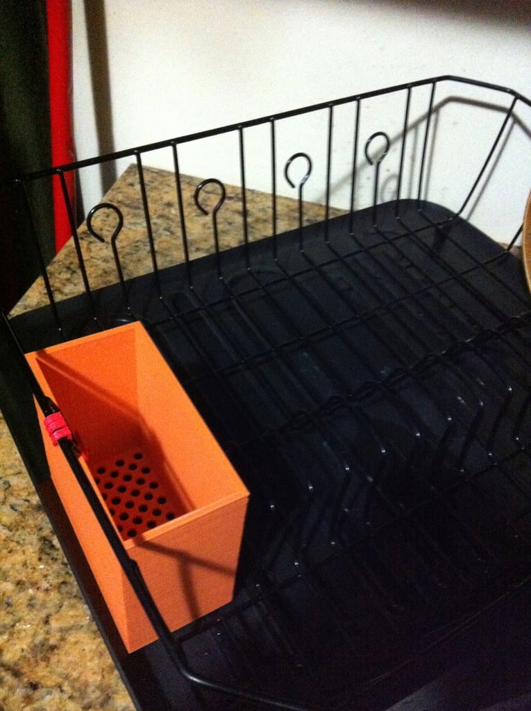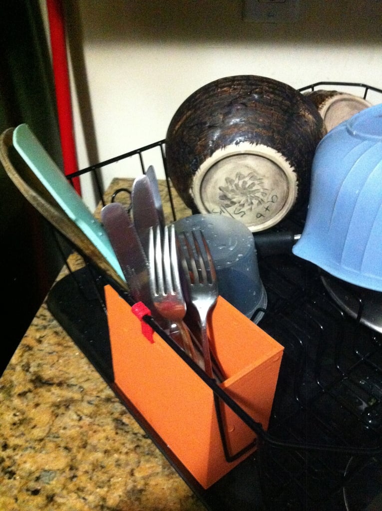 Uchwyt na sztućce do stojaka na naczynia, wyposażony w haczyki i odpływy. Jest to idealne rozwiązanie do organizacji naczyń, zapewniające schludne przechowywanie sztućców i łatwy dostęp do nich, a także łatwe odprowadzanie wody. Idealny dodatek do każdej kuchni!