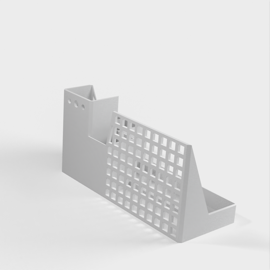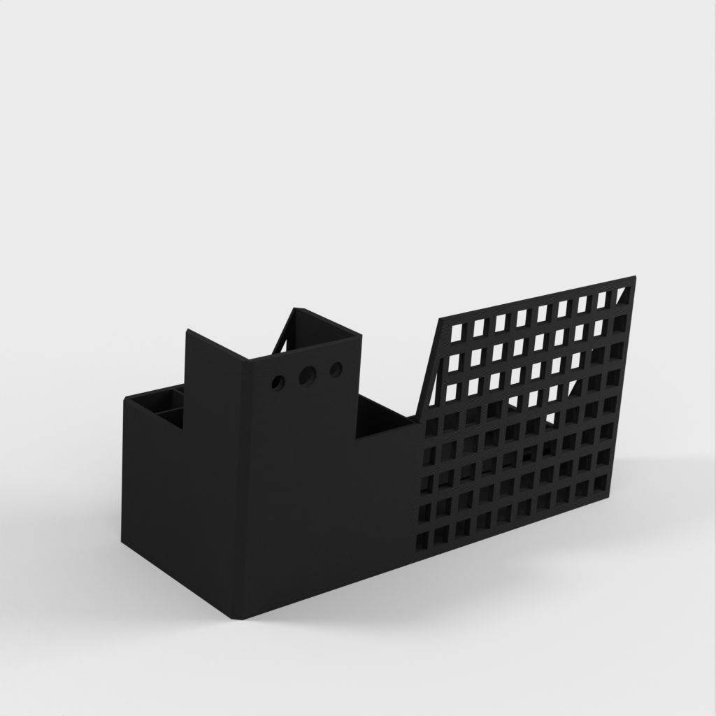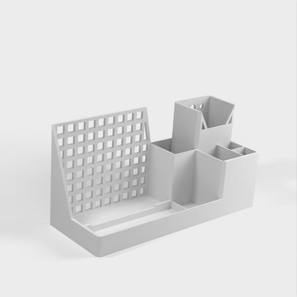 Podstawka pod tablet i organizer na biurko, zaprojektowane z myślą o efektywnej organizacji miejsca pracy. Posiada specjalnie zaprojektowane otwory do bezpiecznego przechowywania tabletu, a także oferuje dodatkowe miejsce do przechowywania materiałów biurowych.